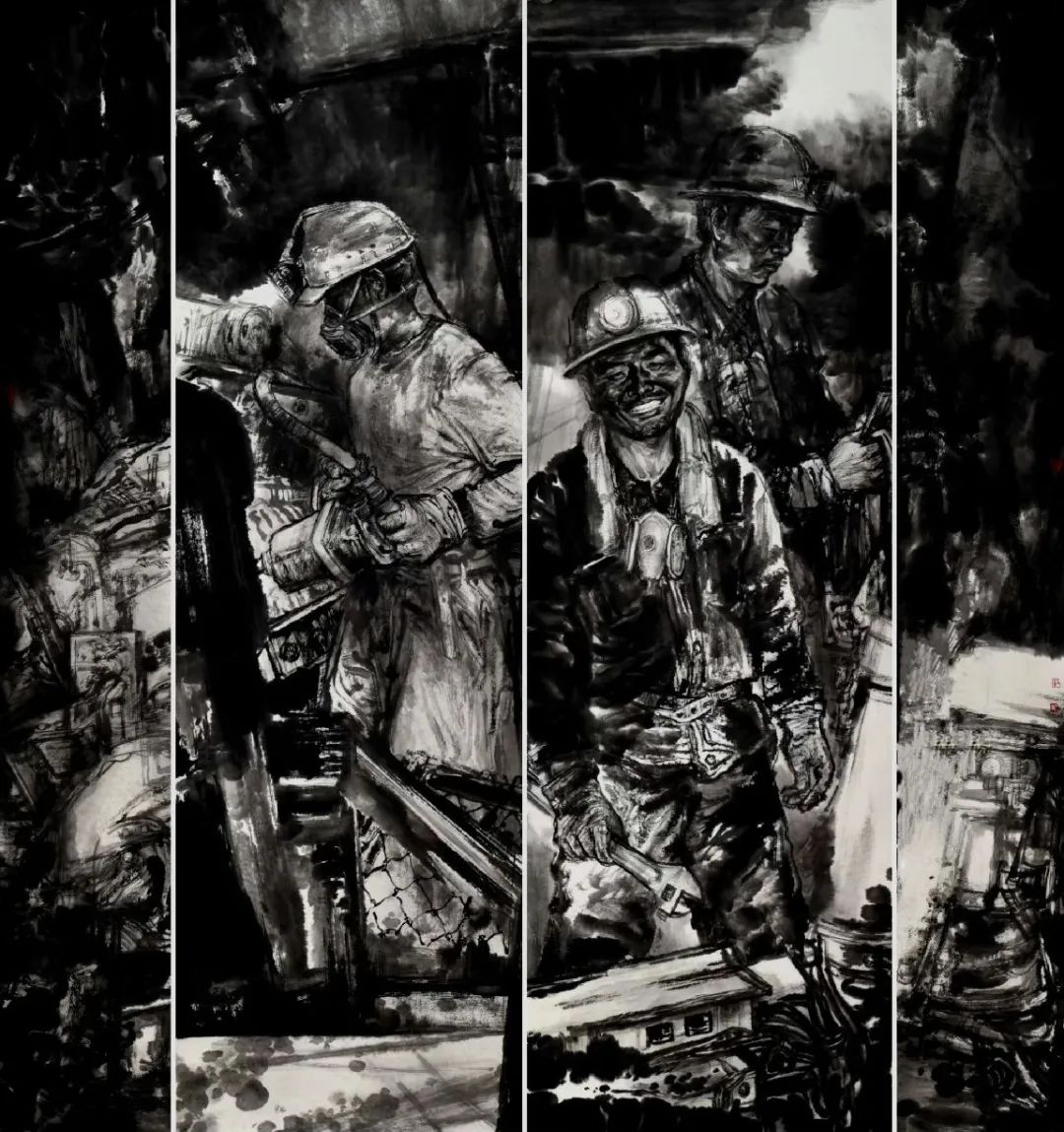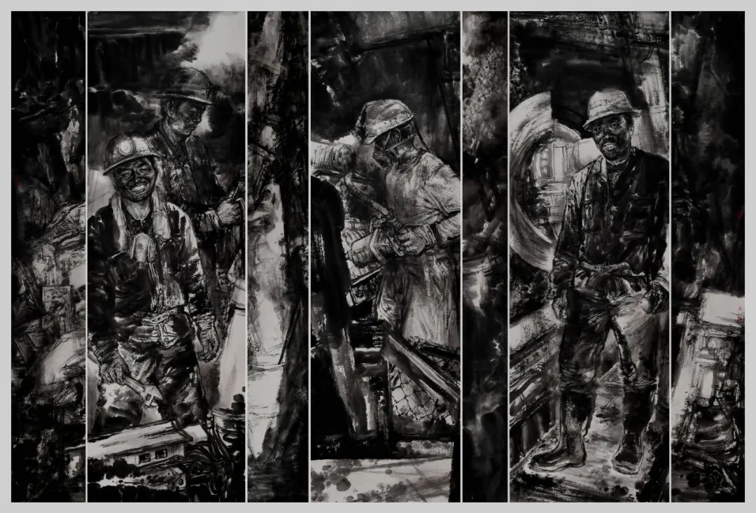 真挚的情感是画家对这片热土的爱和感悟,也是画家创作的根基。带着生活体验和丰富的艺术积淀投入到自己的创作中。以“写其形必传其神,传其神必写其心”的写实与写意交融的笔墨,对矿工人物形象深层次的审美挖掘和人文关照。以形写神,遗貌取真,塑造了一系列生动鲜活、各具美感的人物形象。