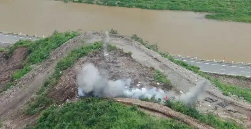 (内喊,注意了,马上放炮了,所有人撤离到安全地带。)