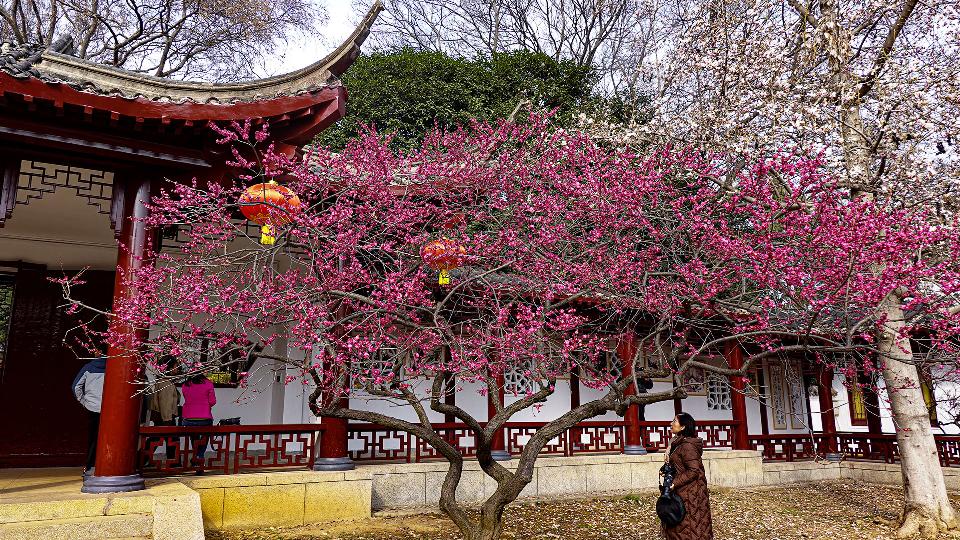 武汉东湖梅园古梅绽放,岁寒迎春