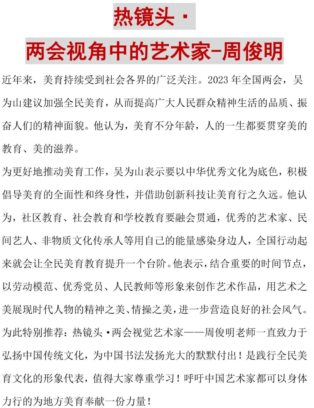 \ 热镜头·两会视角中的艺术家-周俊明