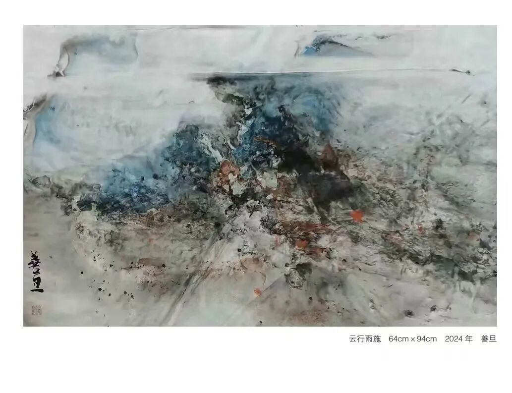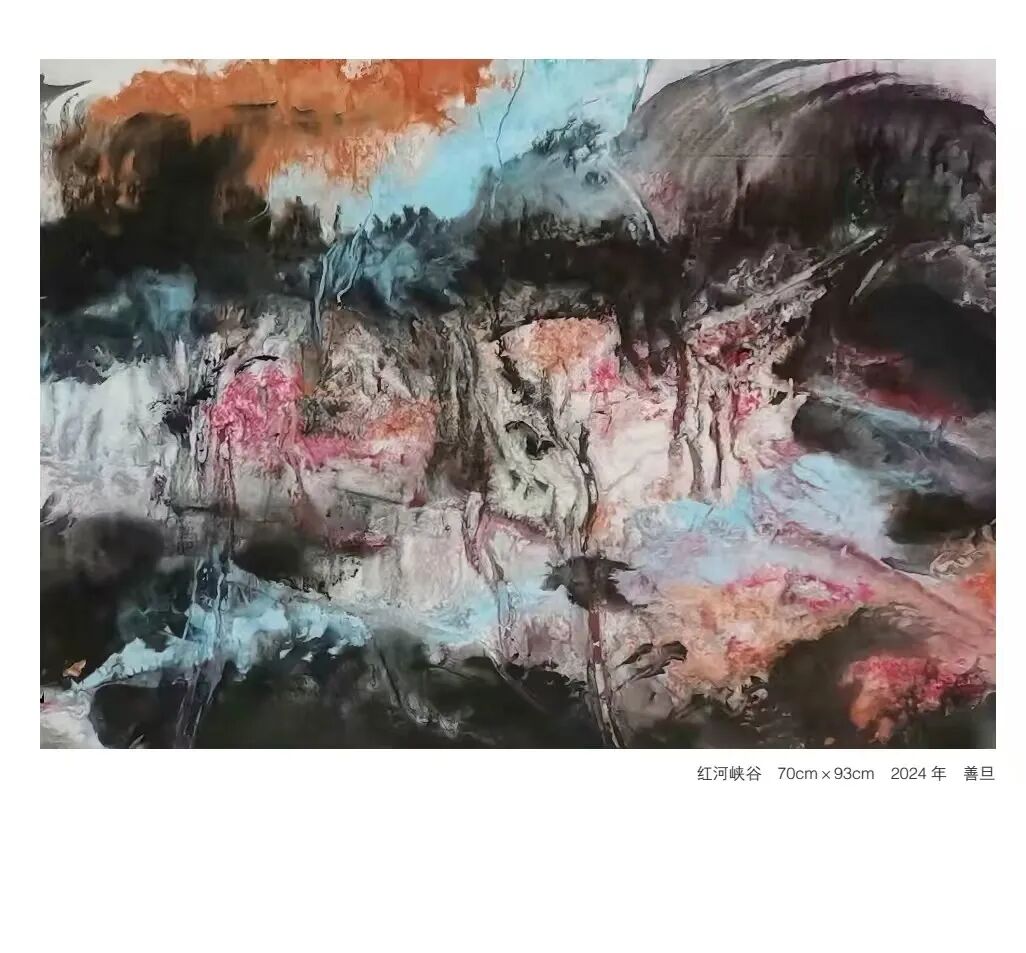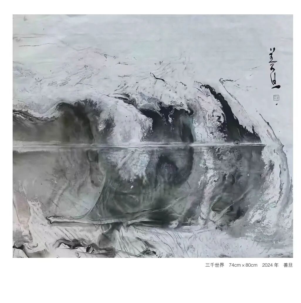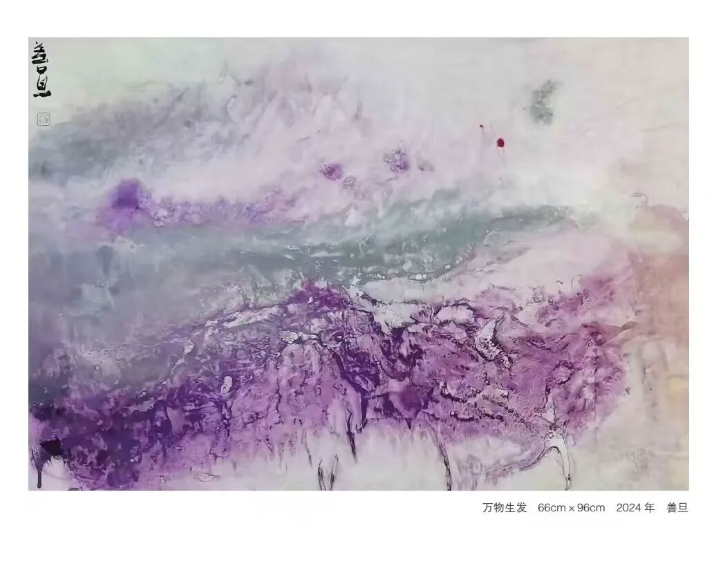 在作品中,可以看到他对传统的尊重和对创新的追求,同时也不乏对西方艺术的探索与对时代认识的表达。善旦的绘画艺术不局限于视觉形式的创新,还包含着对传统文化深入研究和对哲学理念的深刻理解。