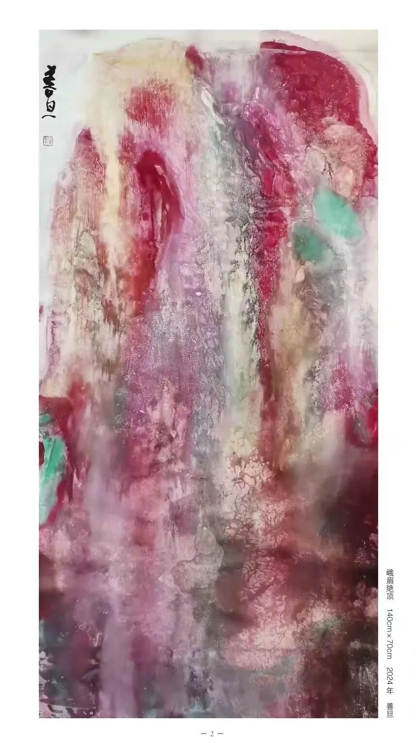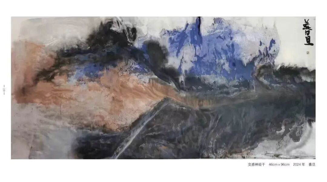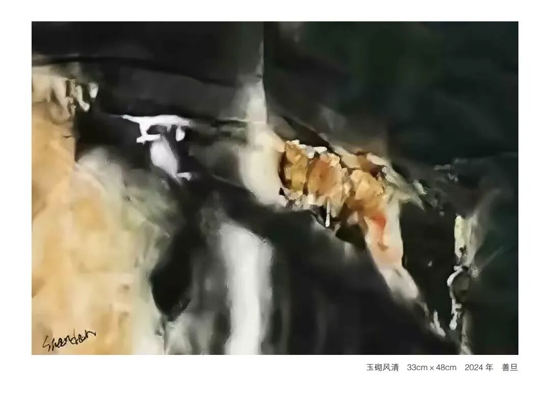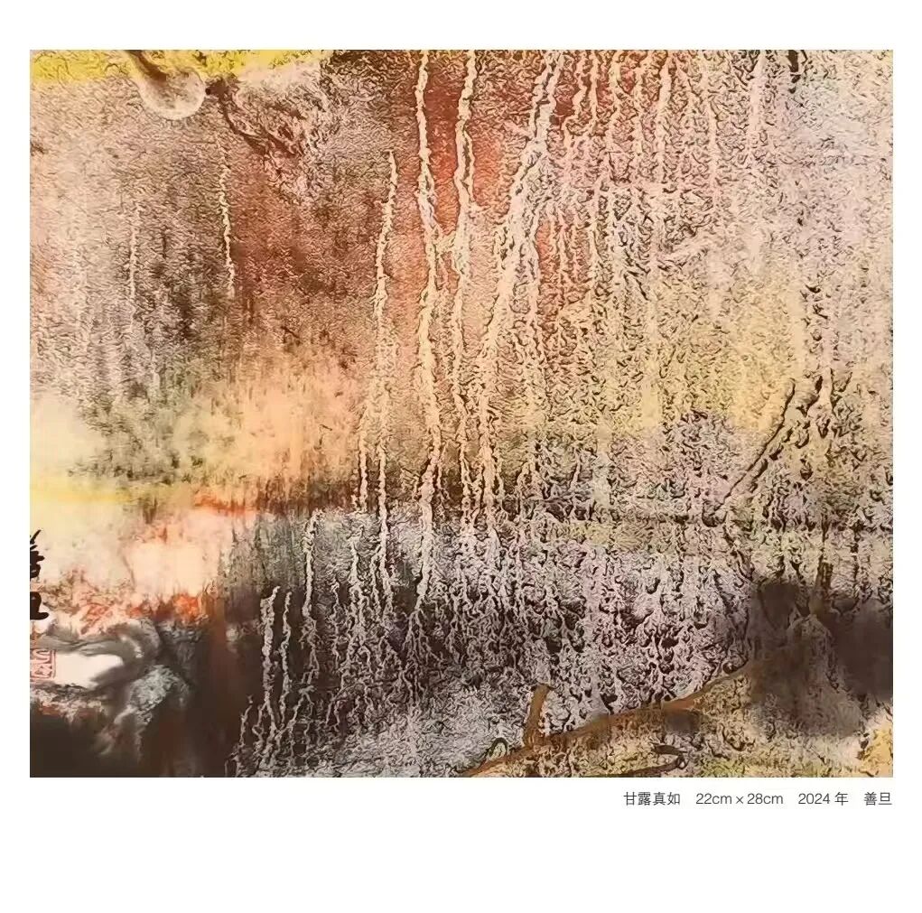 在作品中,可以看到他对传统的尊重和对创新的追求,同时也不乏对西方艺术的探索与对时代认识的表达。善旦的绘画艺术不局限于视觉形式的创新,还包含着对传统文化深入研究和对哲学理念的深刻理解。