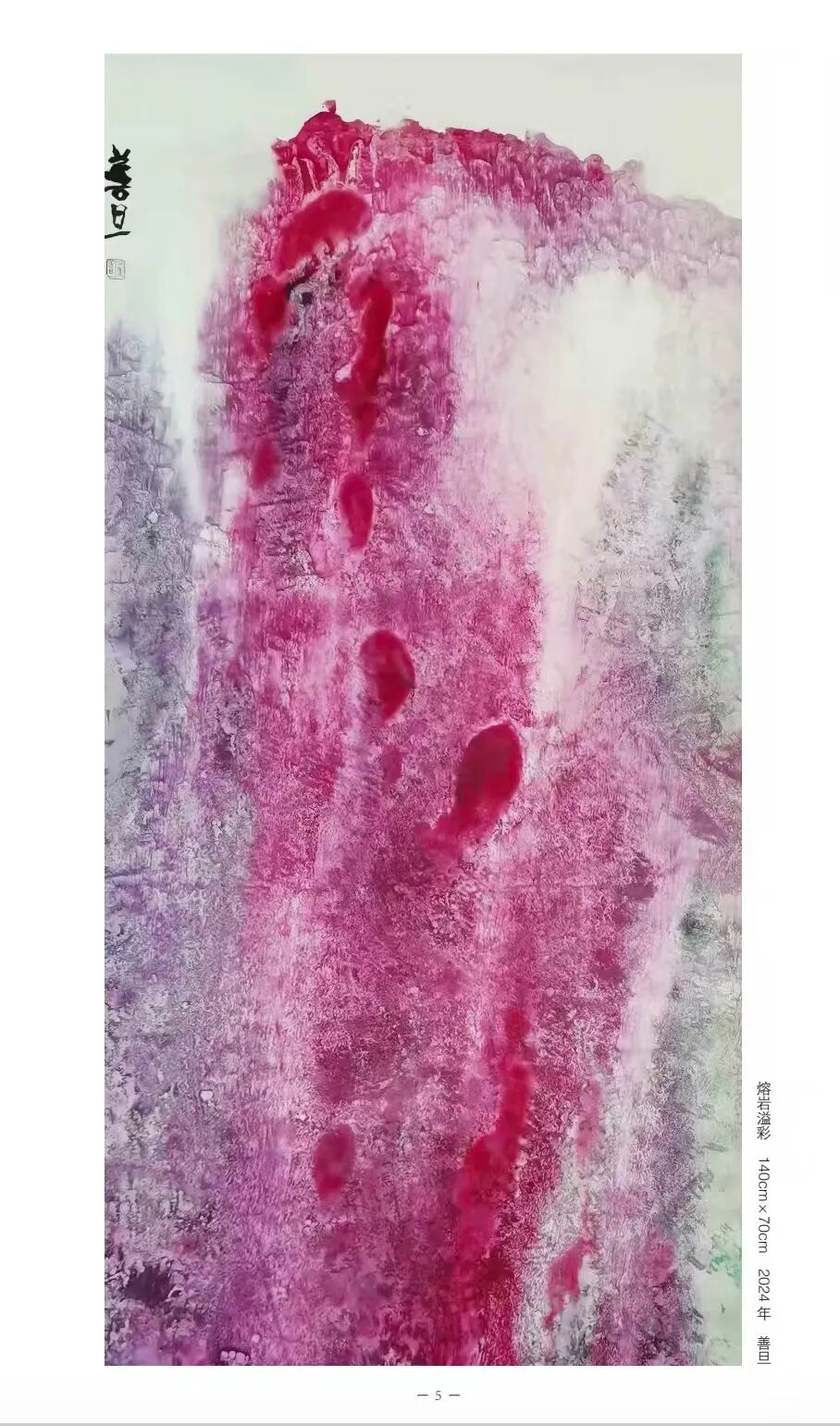 善旦的重彩抽象绘画以其独特的风格和深厚的文化底蕴受到赞誉。他的作品融合了中国传统文化元素,同时注入了现代感,形成了自己特有的艺术语言。善旦的创作不仅仅是对传统的继承,他还在重彩抽象绘画中融入西方的文化艺术,寻求新的表现手法和视觉效果。他的作品具有前瞻性和创新精神,尤其是在抽象绘画方面的探索对当代中国画的创新起到了积极作用。