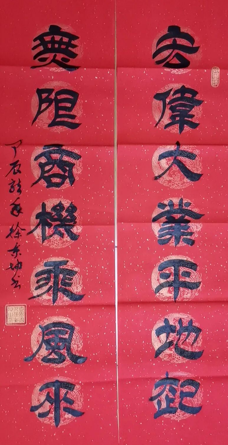 文以载道,翰墨华章,业内多赞叹徐秉坤先生书法富有古意,此言非虚!且依我看,不单单是有古意,更是有威仪神采的碑骨风范!而达此境界,自然也是缘乎于徐秉坤先生多年来的由技入道,深师碑帖求索正宗,化为己用渐老渐熟。再有,得形似者有尽而领神味者无穷。今徐秉坤先生耕耘书坛多年,又有学识宏深的修养加持,所以其整幅书法作品也是词气清正,肃穆蕴藉,不失为后者!常言得时不如得器,得器不如得志,便也就是这个道理。而这种书外功夫的经营沉淀,也正是为徐秉坤的翰墨问道起到了关键性作用。
