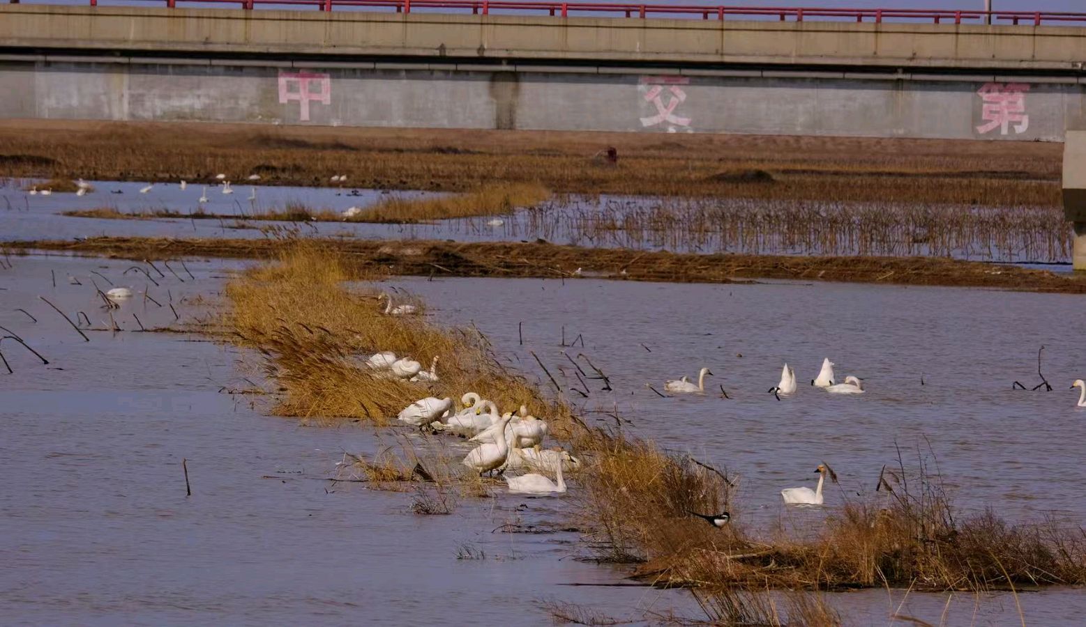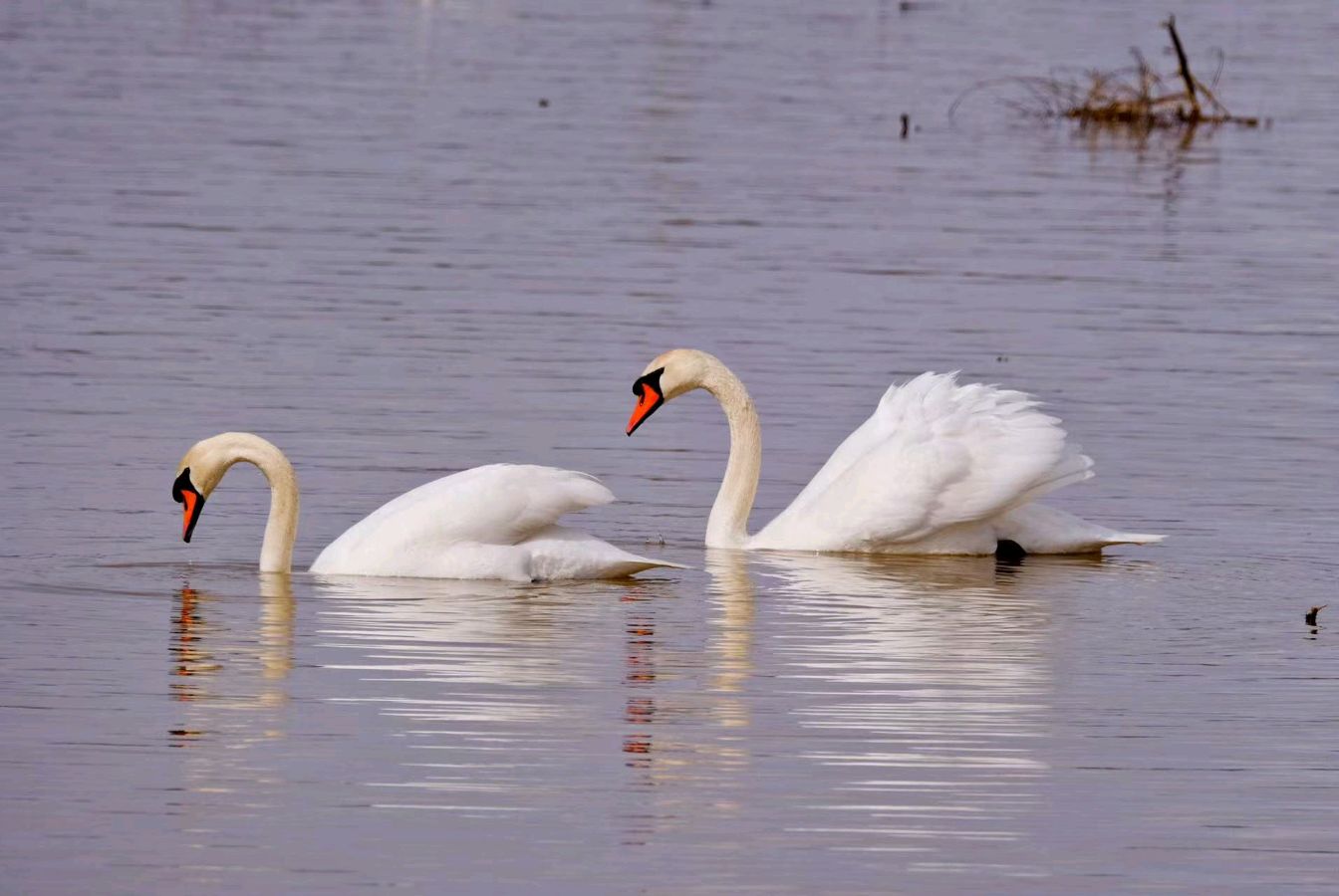 天鹅展翅翼双飞,故地重来伴徙居。