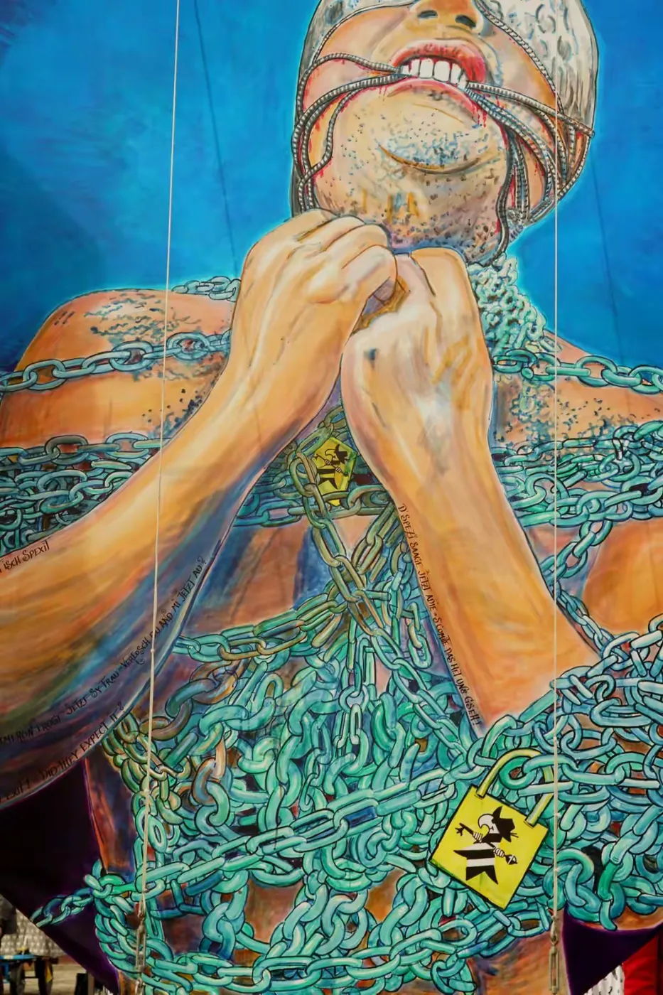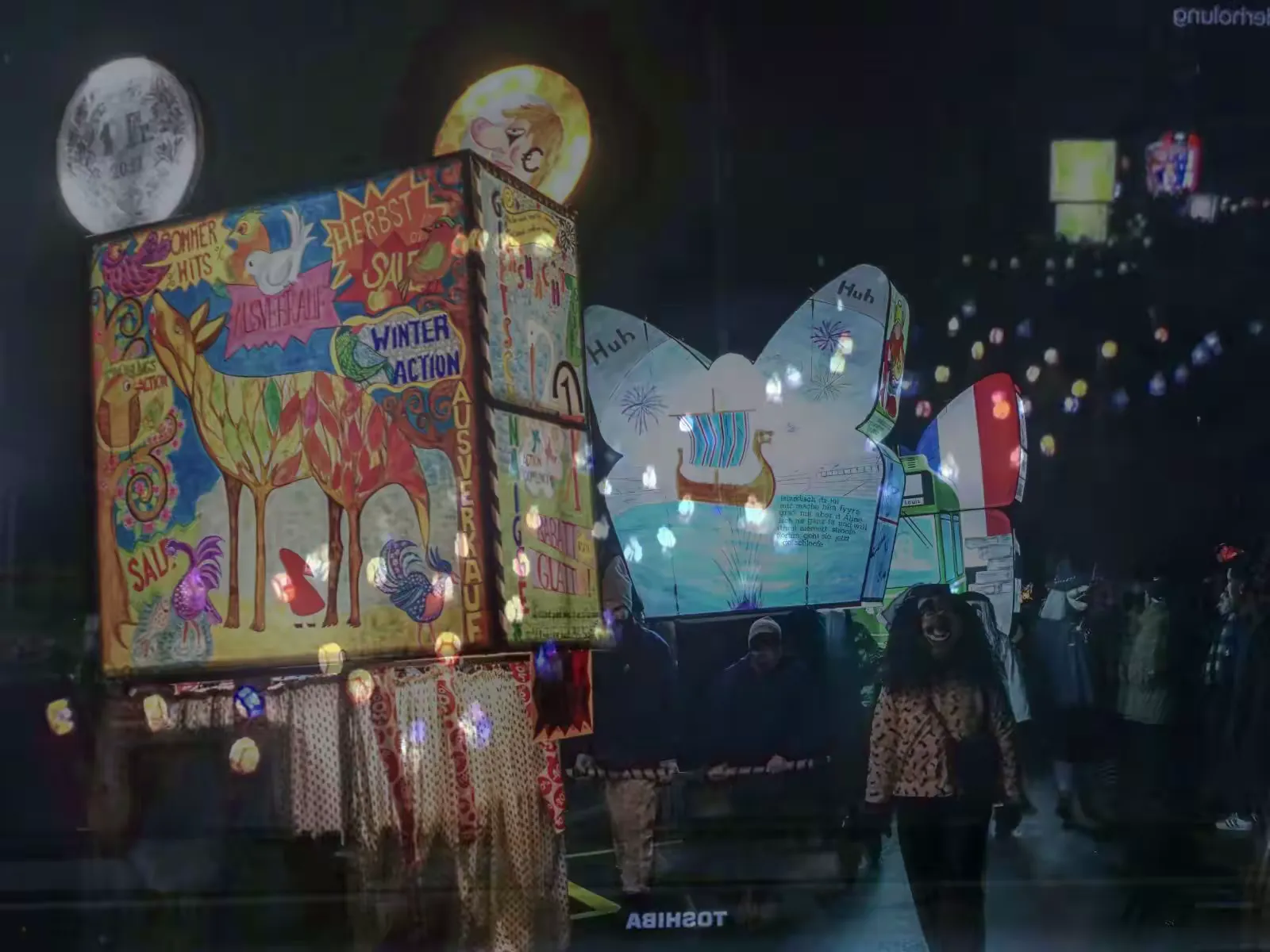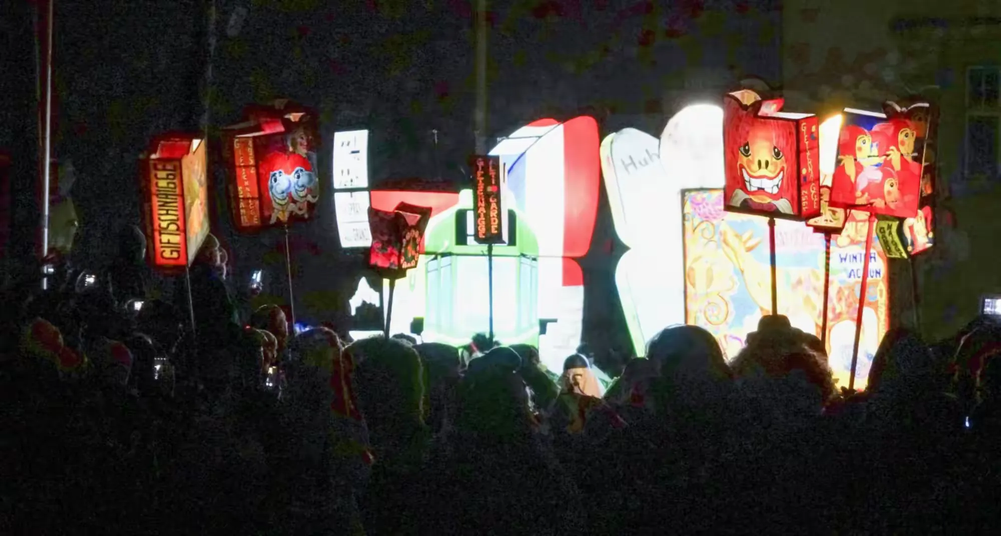 一个个巨型灯箱,画着五花八门内容各异千奇百怪的图案,由各自的游行队伍,或抬、或拉、或扛、或顶,逶迤而行。