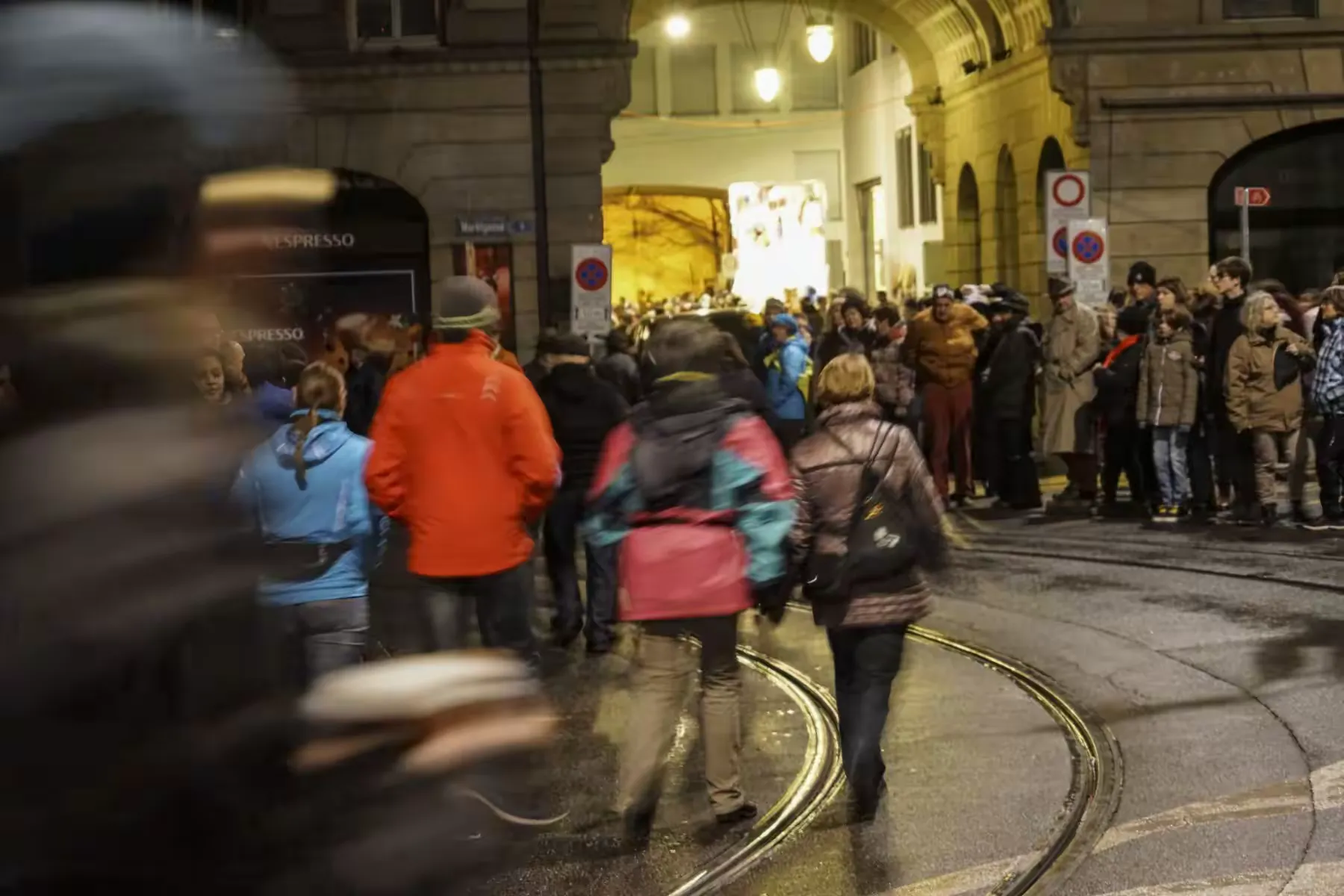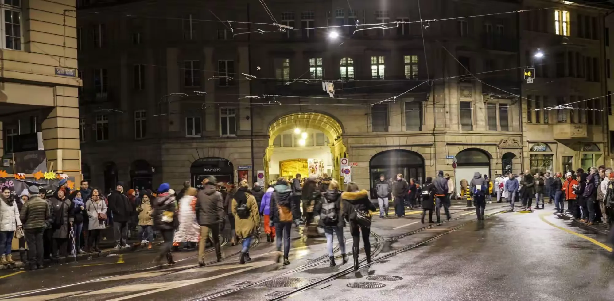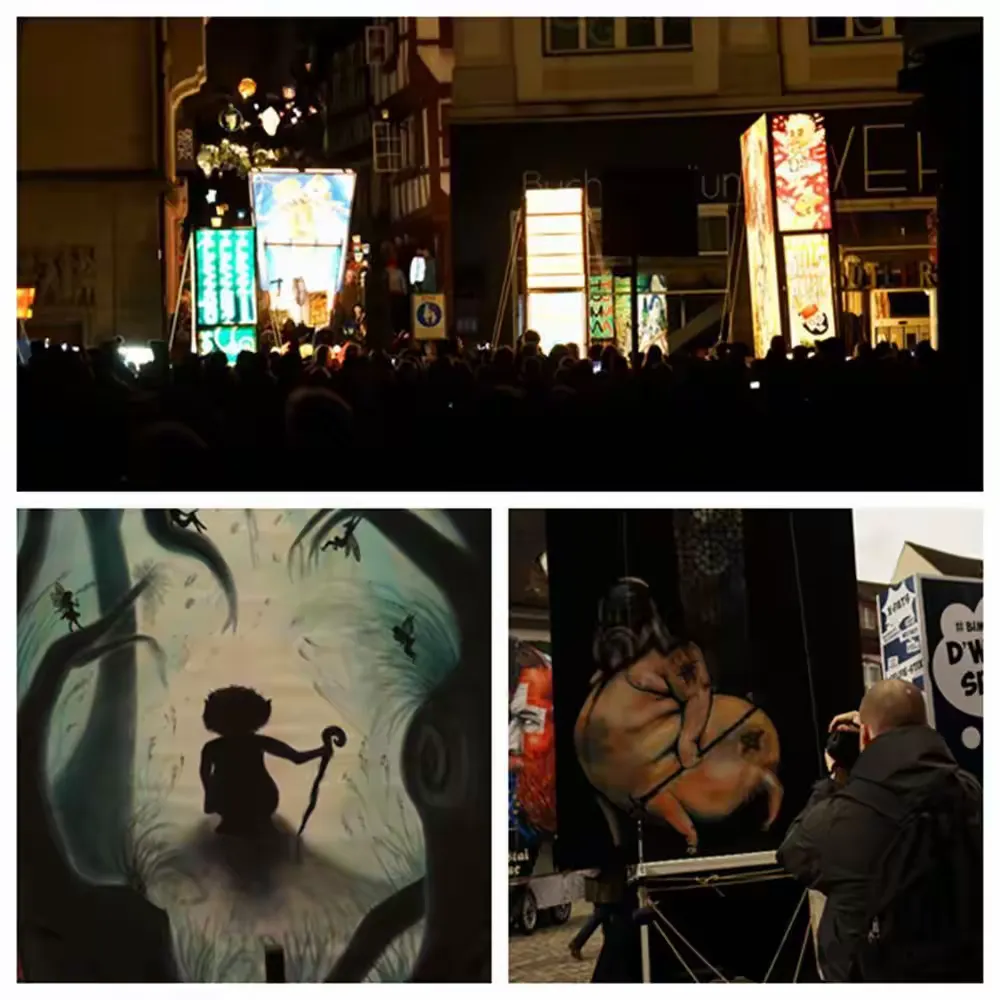 一个个灯箱,一支支队伍,汇成了光的河流,在巴塞尔的大街小巷缓慢优雅地流淌。