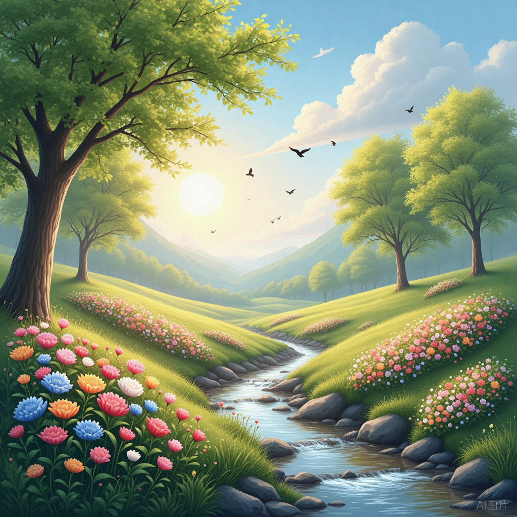 《春归》和《大地的觉醒》则展现了诗人对自然的敏锐感知和深刻洞察。在《春归》中,“我是一枚被冬雪包裹的星辰种子,只有春晖温柔的吻,能唤醒我沉睡的梦”,将自己比作种子,形象地表达了对春天的渴望以及生命在春天复苏的期待。《大地的觉醒》里,“树根用细细的脉络,在岁月的皱纹里编织神秘的梦话”“候鸟从寒冷的极地飞来,嘴里叼着冰的裂缝,轻轻放在樱花还没好的伤口上” 等句子,运用拟人、比喻等修辞手法,生动地描绘了大地从沉睡到苏醒的过程,充满了生机与活力,也蕴含着对生命循环的哲思。