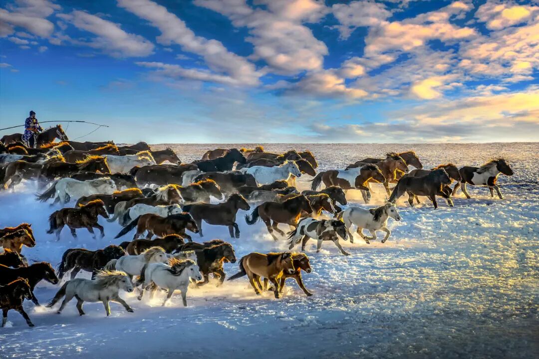 陈中的摄影,画像纷呈。透过镜片,似有画笔在不停地皴,他寻找时间之点,侧耳灵魂的声音,调动对象的节奏,追赶变幻的景色。鹰目的瞳孔里,闪烁的是神赐的光影。他的作品,是时间点在瞬间的推演,而不是在推演中的时间点。前者是神在演出,后者是演出中的神。山水、奔马,海路金滩、云海孤帆等等,包括阴暗背景里,人物明朗的局部突出,有象征主义油画的风格,其中神韵,与鹰目的锐利和清澈有关。
