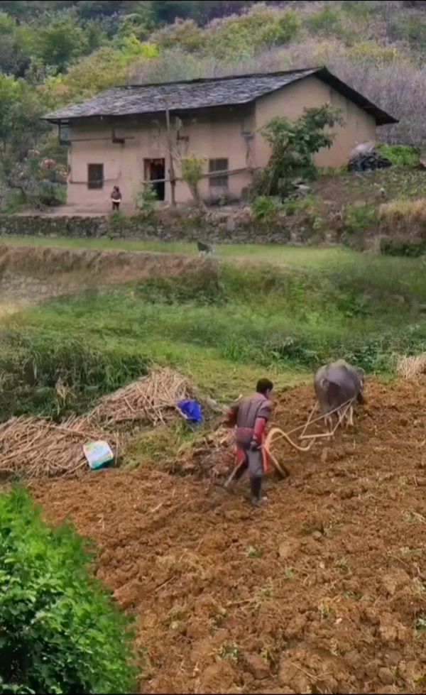 耕牛脚踏的尘烟
