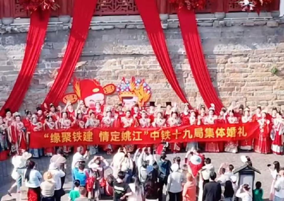 2025年4月18日午后,暖阳倾洒,浙江余姚的阳明古镇开启了一场独具韵味的集体婚礼。“缘聚铁建,情定姚江”,在中铁十九局的悉心筹备下,18对新人于亲朋好友、同事的共同见证中,踏入婚姻殿堂,为人生绘就崭新篇章。