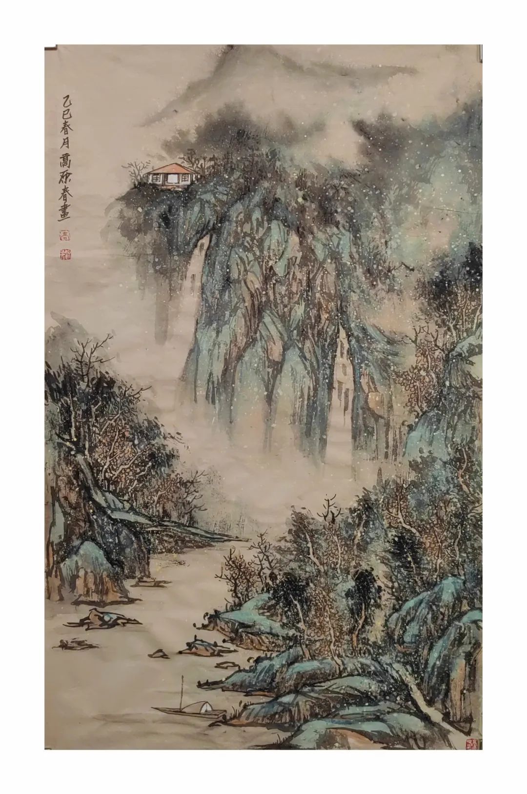 2019年本人国画作品(青山绿水图),入选第十三届全国美术作品展暨天津市美术作品展。(天津美术学院展览馆)。