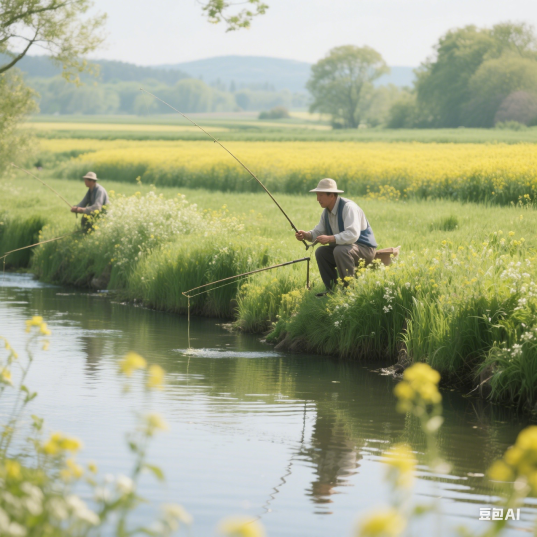 昨天下午天气晴朗,惠风和畅。我独自步行在老家马牧河边的堤埂上,左边是开满油菜花的农田,右边是流水潺潺的马牧河。河边有很多钓鱼爱好者,看了几位,大都收获甚微。有两位仁兄头戴白色鸭舌帽,帽檐压得很低,看不出年龄,就像电影、电视中的地下工作者用钓鱼方式掩饰正在交换情报。