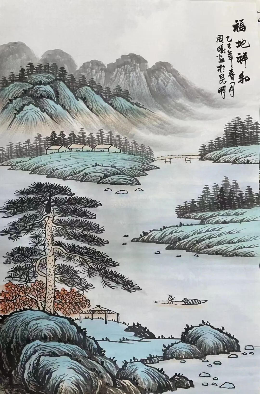 色彩语言的革新体现了周曦对文化装饰美学的深刻理解。他打破传统青绿山水的程式化表达,以富丽而不失雅致的设色体系重构视觉秩序:金碧辉煌处彰显盛世气象,墨色交融处呈现禅意空灵。花鸟题材中,葡萄的晶莹剔透、牡丹的华贵端庄,既承袭两宋院体画的精工绚烂,又以现代审美重构色彩符号,成为家居空间的文化图腾。这种"色墨共生"的探索,既延续"随类赋彩"的传统法度,又以装饰性美学回应大众对美好生活的追求,让艺术真正走进千家万户。