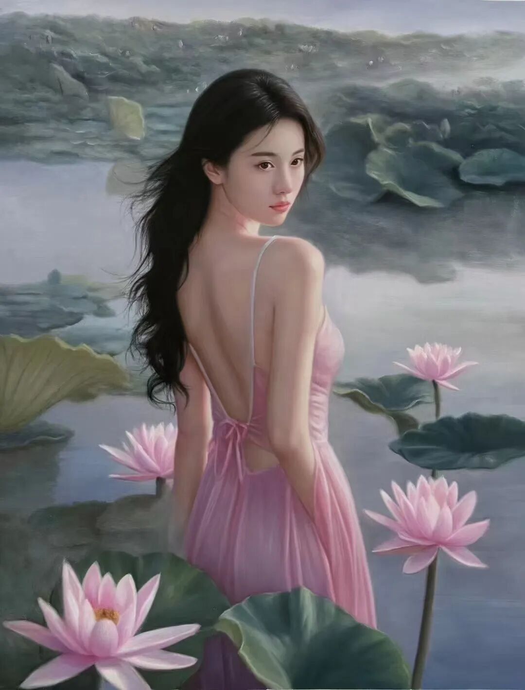 周曦先生的艺术成就,成为当代画坛的标杆。其笔下物象形神兼备,既继承千年东方美学的深厚底蕴,又融入当代精神的鲜活力量。他深谙"外师造化,中得心源"的真谛,将传统白描的骨法用笔与现代写实技巧融合,人物画中线条呈现曹衣出水的质感,既显肌理之精微,又传神韵之灵动;山水画中峰峦叠嶂墨色氤氲,既承宋元气象,又显时代气魄。这种形神合一的艺术追求,是对"六法"精髓的当代诠释,并以东方美学的哲学内核构建跨越时空的艺术对话场域。