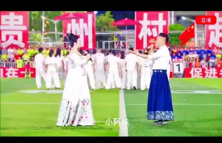 2025年5月4 日晚上9点15分,纳雍县融媒体中心张志作词的《我家住在彩虹上》由苗族歌王蝶当久(潘兴周)与阿娜丹唱响榕江村超,首发成功。