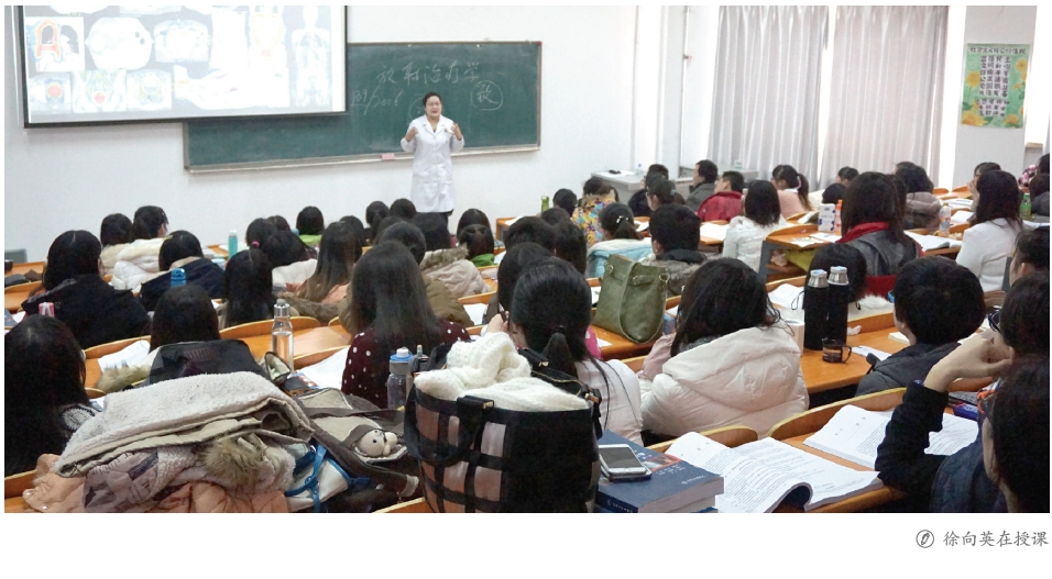 从日本回国后,徐向英先后培养了近50 余名硕士、博士及博士后,她教授的《肿瘤放射治疗学》曾获得哈尔滨医科大学首批“精品课程”,主编的“十二五”“十三五”国家级规划教材《肿瘤放射治疗学》进入全国100 余所医学本科院校的课堂。她还被评为“三育人标兵”“巾帼楷模”,荣获黑龙江省高等医学教育教学成果一等奖等多项奖项。
