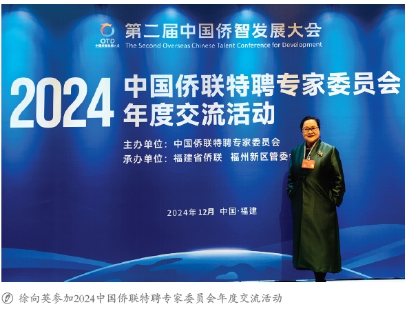 从北到南,从哈尔滨到广州,徐向英在侨联各项工作中主动作为,以自己的专业与热情赤诚奉献。她常说:“在国外学习的经历使我深深体会到,没有一个强大的祖国,就永远摆脱不了被歧视的命运,是祖国培养了我们,我们更要报效祖国。”