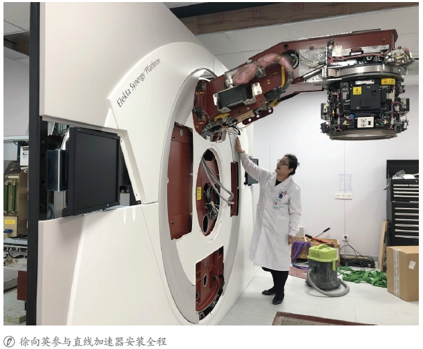 2019年1月15日,直线加速器正式启动安装。为了加快安装速度,徐向英与4 位专业工程师,一起打开了整整45 大箱的各种部件,夜以继日地赶进度,在他们的努力下,主体部分与附加部件在短短7天内完成了安装。那一刻,徐向英所展现的超出常人的意志力和执行力,让所有人都为之惊叹,几乎让人忘记了她已是一名年近花甲的医者。