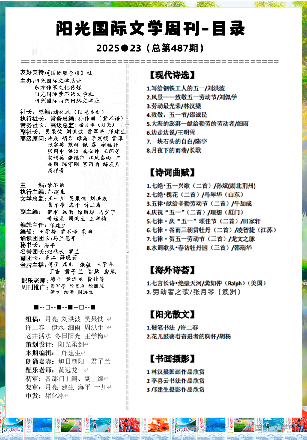 梦中惊醒了花儿,与花儿一起奔放。让丰收的果实累累,让岁月的梦漂泊在枝头、山川、河流、戈壁沙漠。