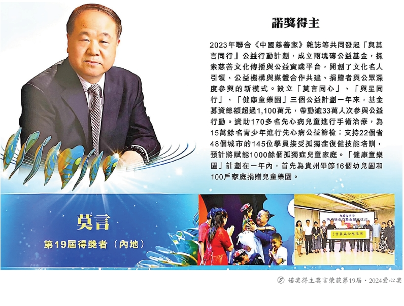 莫言获爱心奖,绝非偶然。他用行动诠释,文学创作与爱心慈善并非两条平行线。文字里,他剖析人性、洞察社会,唤起人们心底的悲悯与共情;生活中,他身体力行,将财富、声望化作救助他人的有力臂膀。从个体捐赠到引领公益风尚,从物质帮扶到理念传播,莫言一路行来,怀揣着滚烫初心,在慈善大道上笃定前行。