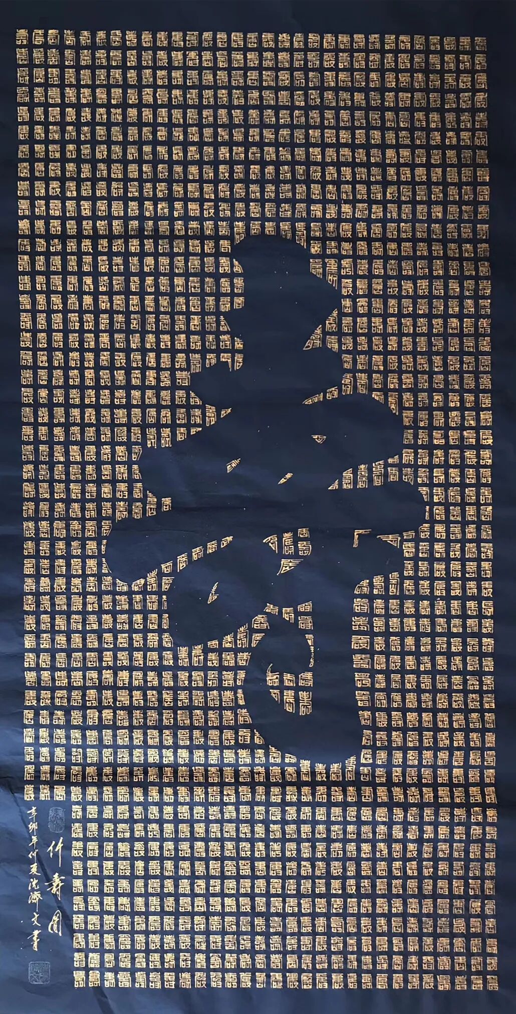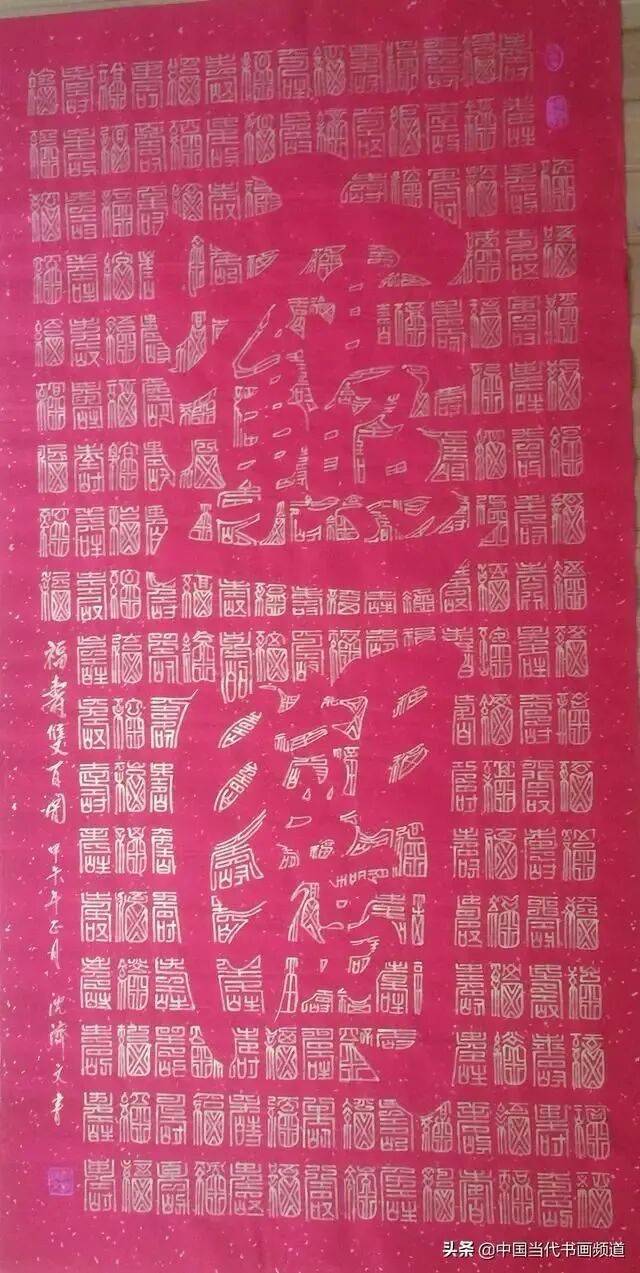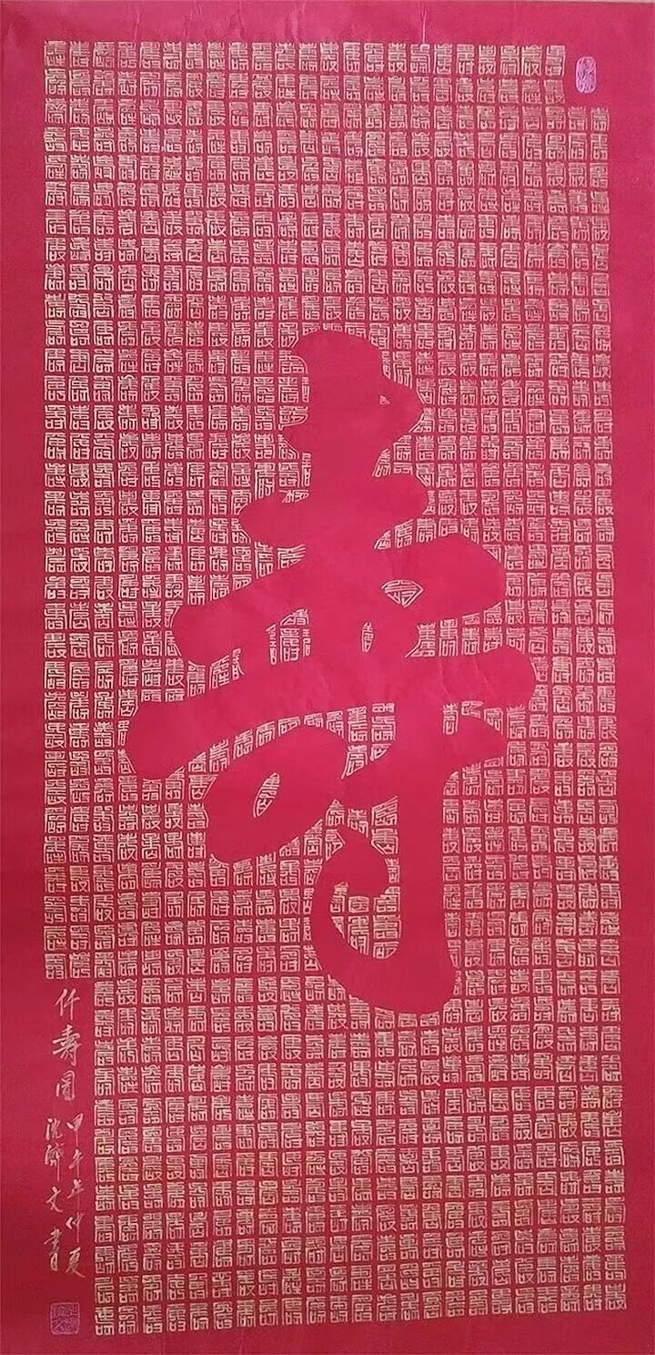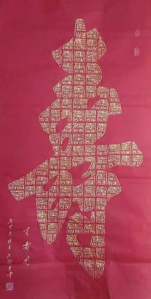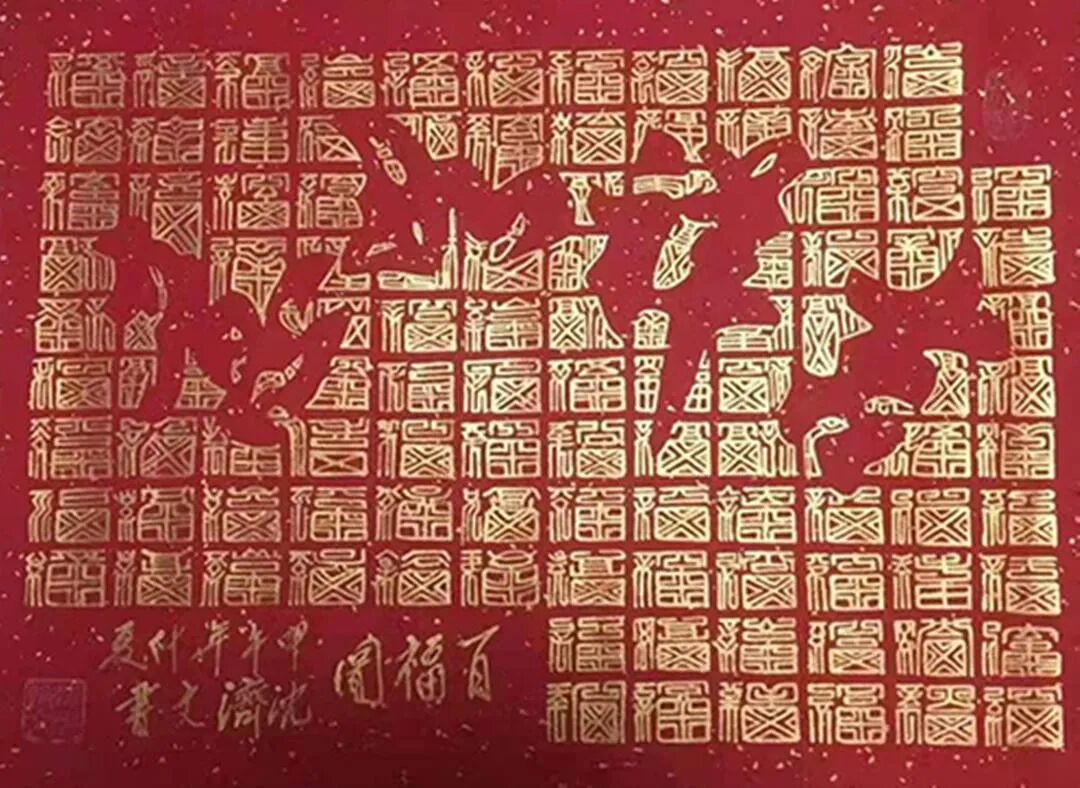 在当今书画艺术领域,书法家沈济文以其独特的合璧书法的创建成功而备受瞩目。合璧书法是一种将书法与绘画相结合的新型美学形态,通过对书法字形的重组与绘画空间的构建,展现出别具一格的艺术魅力。合璧书法作为一种将书法与绘画相结合的艺术形式,其核心在于用书法的结字技巧,重新塑造美术空间。在这一过程中,每一个书法字形都成为美术空间的“绝妙一点”,通过无数个绝妙点的组合与排列,构成具有绘画审美价值的画面。例如“伟人画像”“孔子画像”“寿”“福”等作品,这些都是合璧书法在美术作品中的典型表现。