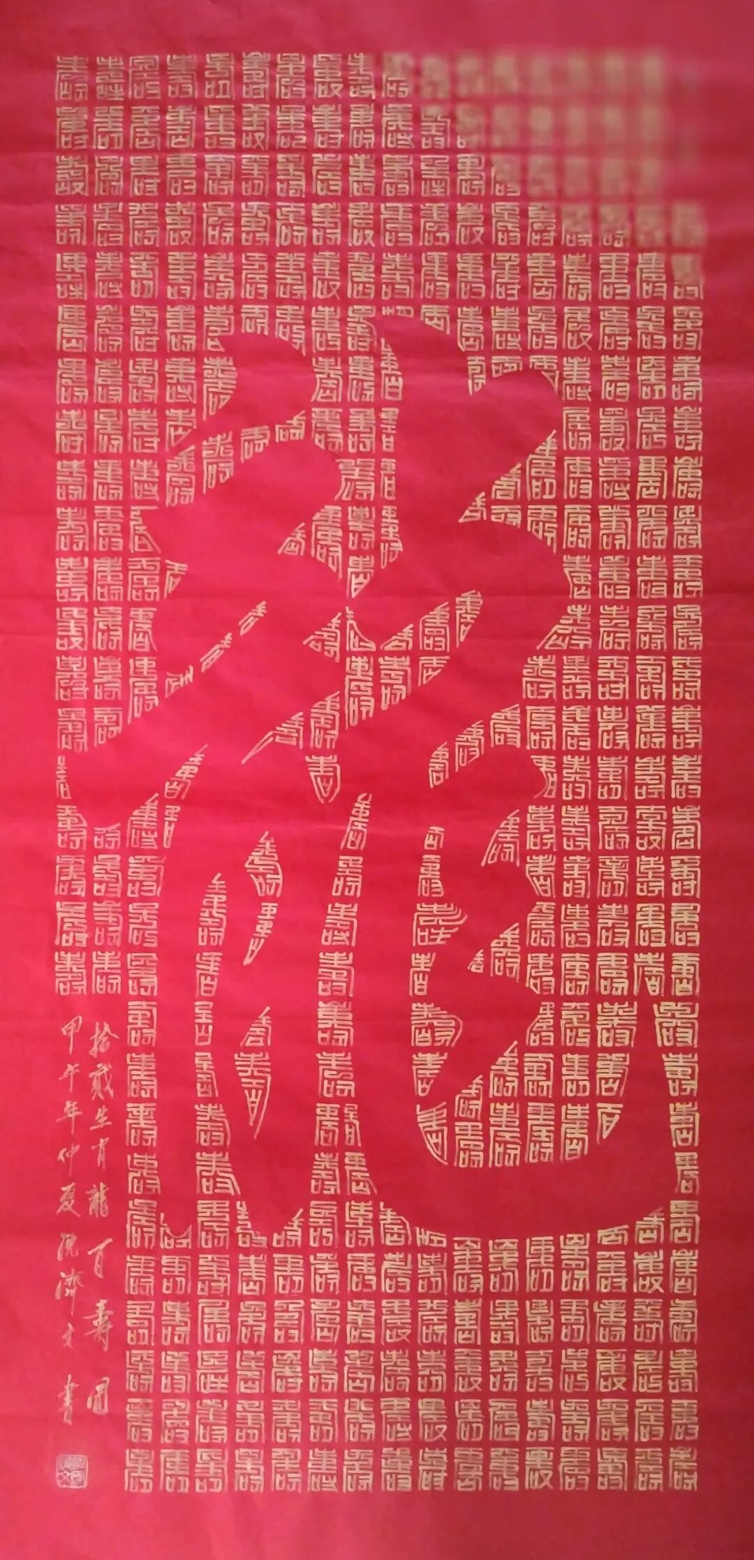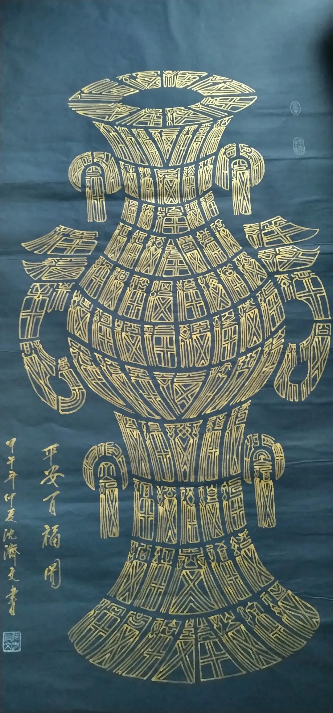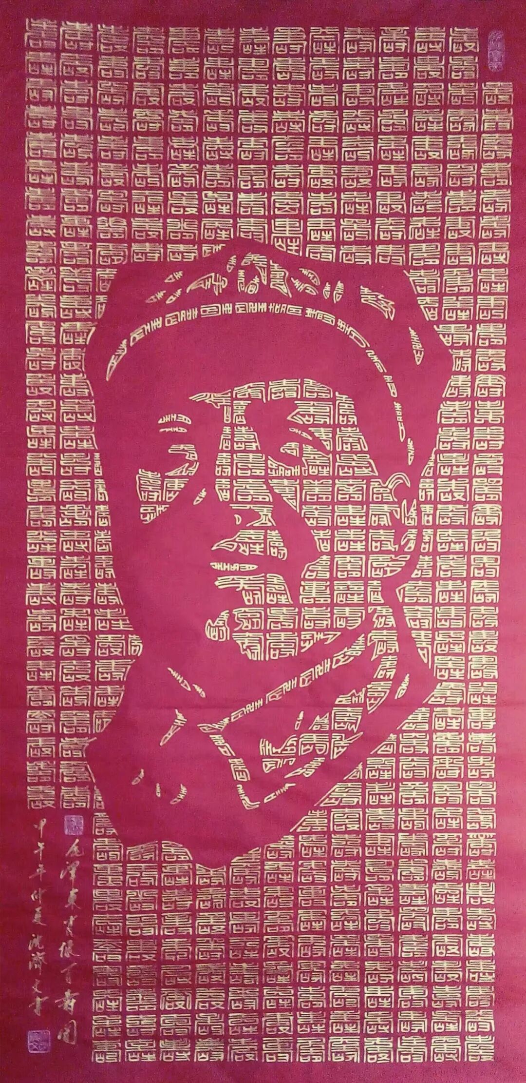 在当今书画艺术领域,书法家沈济文以其独特的合璧书法的创建成功而备受瞩目。合璧书法是一种将书法与绘画相结合的新型美学形态,通过对书法字形的重组与绘画空间的构建,展现出别具一格的艺术魅力。合璧书法作为一种将书法与绘画相结合的艺术形式,其核心在于用书法的结字技巧,重新塑造美术空间。在这一过程中,每一个书法字形都成为美术空间的“绝妙一点”,通过无数个绝妙点的组合与排列,构成具有绘画审美价值的画面。例如“伟人画像”“孔子画像”“寿”“福”等作品,这些都是合璧书法在美术作品中的典型表现。