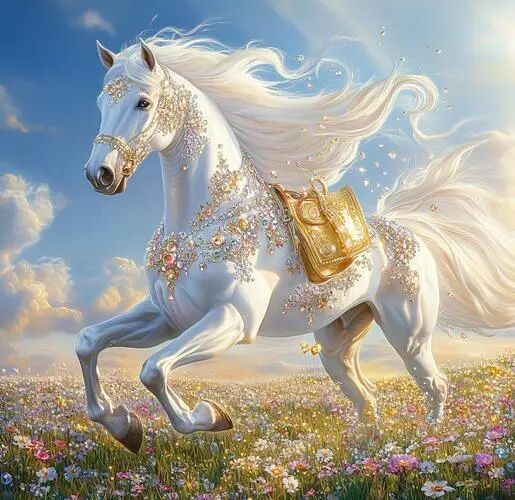 儿子把父亲用过的全套鞍鞯拿来,放在老人身边:“阿爸,它来了,你的马。”白马飞奔而来,鬃毛飞扬,草地、森林的颜色正在变得深沉幽暗。白马咴咴地嘶鸣起来。