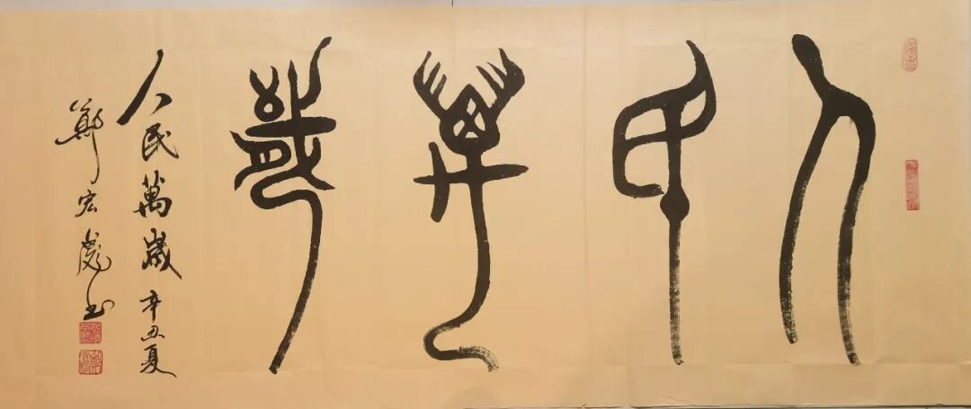 这一天让世界瞩目——5月10日,在美国纽约曼哈顿时代广场上的大屏幕上亮出“中国万岁”的字样!原来,这是中国书法家郑宏彪在“艺坛名家时代广场海外展播”中亮相,只见他气壮海天,豪迈挥手,展播出12幅中国书法艺术作品:仁义礼智信(5幅联拼)、红色心理学、十九大报告小楷长卷(50米•2幅节选)、世界和平、中国精神、正义必胜、中国万岁,还有一幅是他挥动巨笔在月亮上书写的艺术照片。这种表达从中华优秀文化“仁义礼智信”开始,尔后是他本人创立的心理学说“红色心理学”,接下来的是国宝级小楷长卷、祝福“世界和平”,自信“中国精神”,高呼呐喊“正义必胜”与“中国万岁”!虽只有几十秒展播,但表达了中华优秀传统文化,彰显了红色文化与“红色心理学”,亮出“世界和平”的心愿,喊出了“正义必胜”与“中国万岁”的响亮口号,展示的内容有深度,有高度,表现出浩然正气和必胜的信念,相当于郑宏彪在时代广场屏幕上作了一场震撼性的战斗演讲!