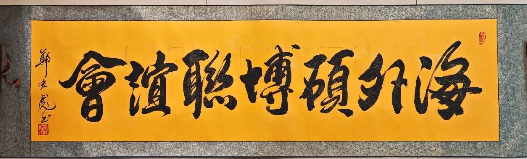 墨韵润行国际,笔锋妙作千秋。郑宏彪的书法创作,始终围绕“以笔写心、以墨载道”的核心展开。他以一“大”字立骨传神,又以《颂歌》、《神曲》拓展书法美学边界,再以《山水诗词》返归中国审美核心,形成了一条从个体审美出发、通往中外文化交流高峰的艺术路径,是用中国的笔墨讲述中国文化、世界故事坚定行者,所有的书法作品既不失母体文化的根性,又拓展了书法的表现维度,真正实现了中国书法“走出去”,走向“高点”的的文化理想。起笔落笔依小处着手,整体构成又不乏宏阔之风,这是是当代中国书法走向世界成功范例,当载史册,以证春秋!