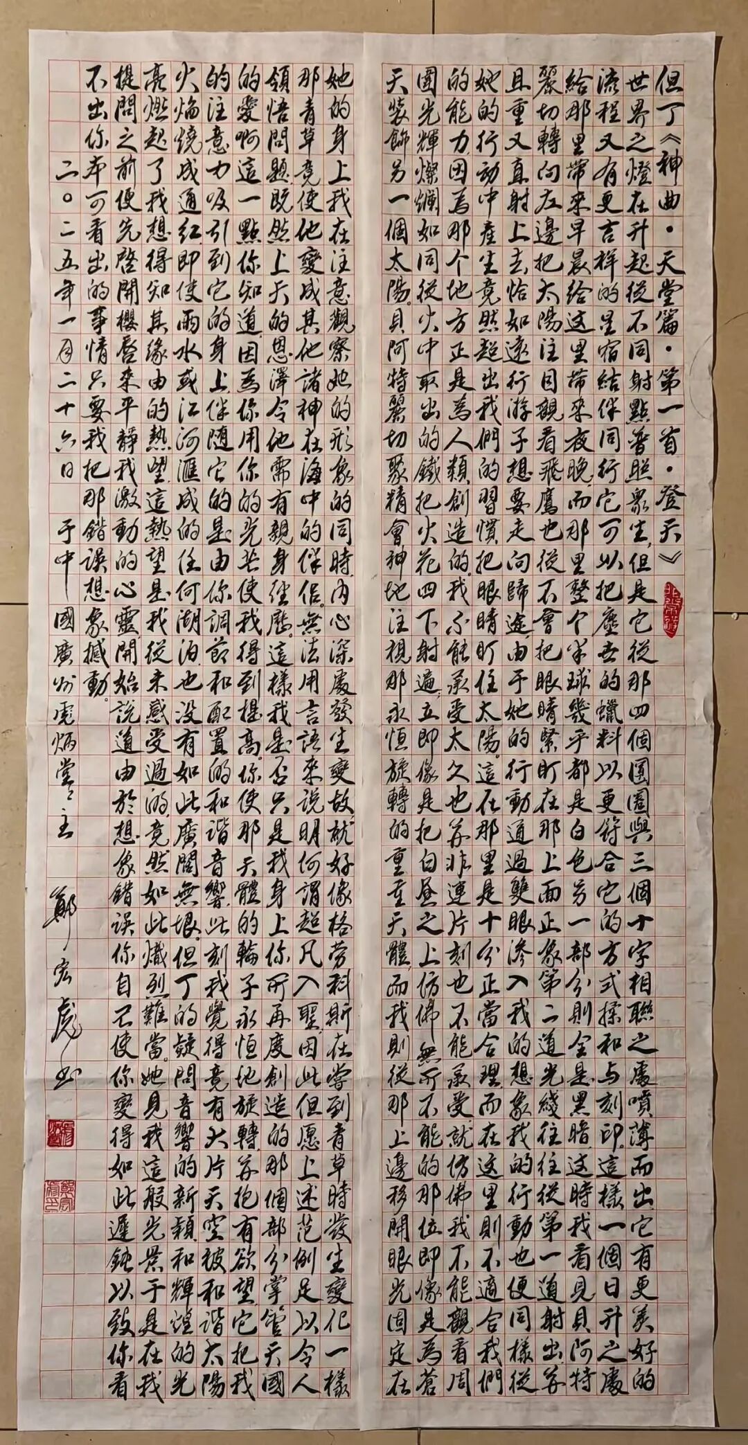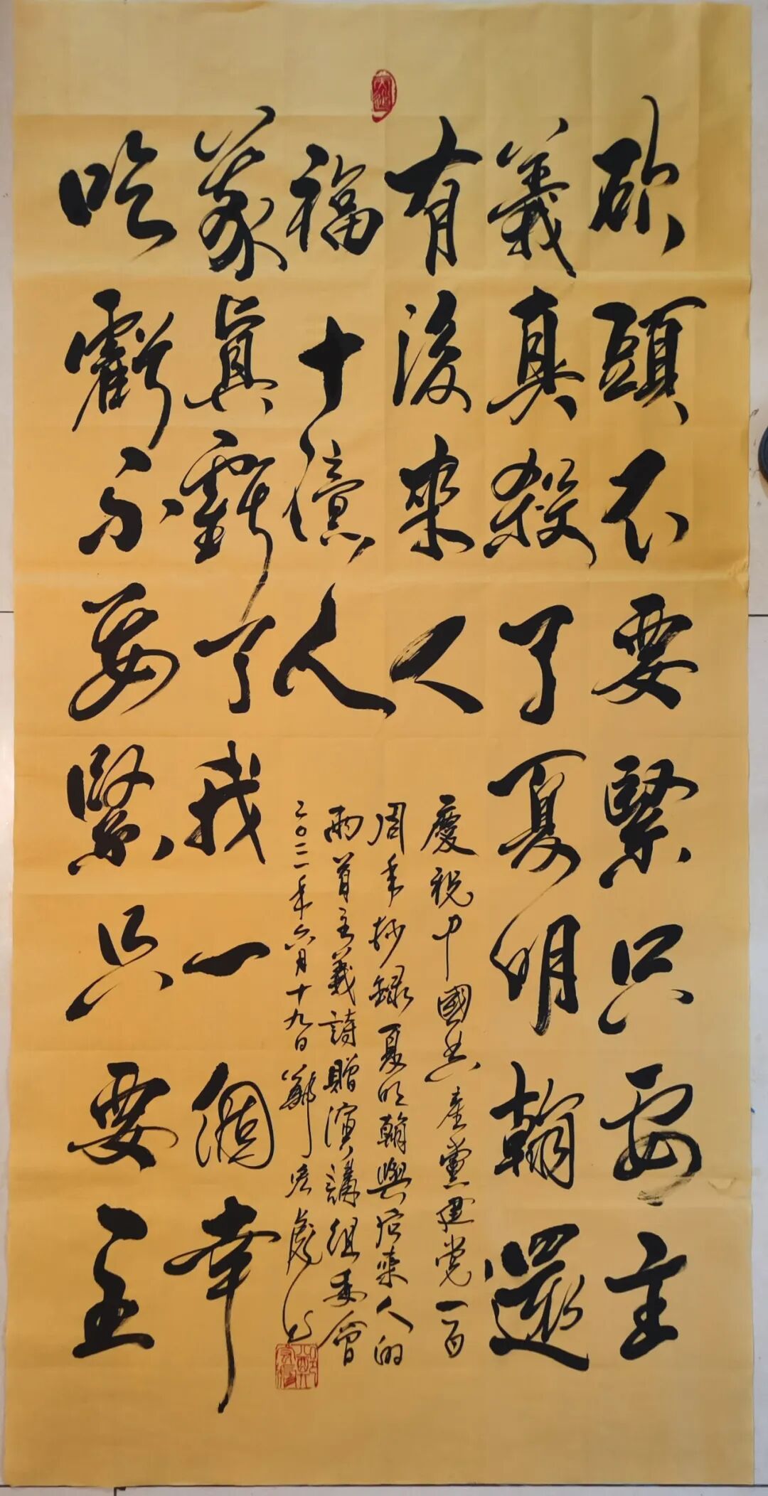 红色长卷——为庆祝建党100周年,书写了三大“红色长卷”,即50米长的《十九大报告小楷长卷》、50米长的《中华英烈万名录小楷长卷》、300米长的《二十大报告行楷长卷》。同时,为著名影视艺术家林芳兵及100多名诗人书写80米长的《百诗长卷》。