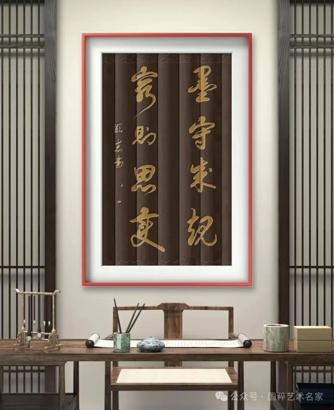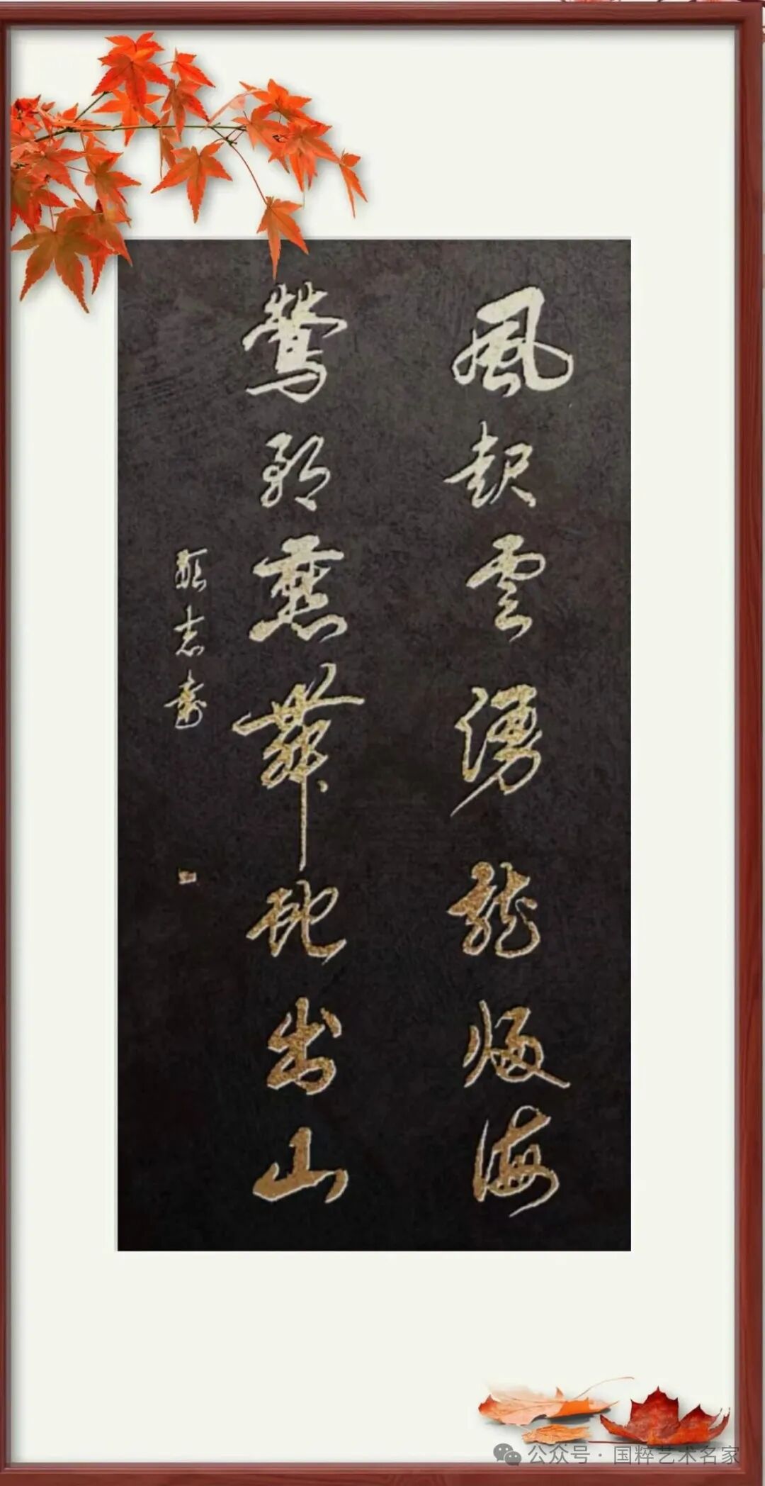 笔走龙蛇间的艺术交响 —— 论其酣畅雄放的书风魅力在书法艺术的浩瀚星空中,陈先生的笔墨宛如一颗独特而耀眼的星辰,以酣畅淋漓的书风、率性自然的挥运、雄放豪迈的笔意和雅韵朗丽的气质,书写着属于自己的艺术传奇,在观者心中激荡起层层涟漪,令人心驰神往。当目光触及那一幅幅书法作品,墨色在宣纸上肆意流淌,线条如奔腾的江河,毫无阻碍地倾泻而出。每一次提笔、行笔、收笔,都仿佛是一场激情的释放,没有丝毫的犹豫与迟疑。字里行间,墨韵充盈,浓淡相宜,既有墨色饱满时的厚重深沉,又有枯笔飞白处的灵动飘逸,展现出一种一气呵成的畅快之感。这种酣畅,不是肆意妄为的宣泄,而是书法家对笔墨高度掌控下的自然流露,是其深厚书法功底与旺盛创作激情的完美融合。观者仿佛能透过纸张,看到书法家在创作时那全神贯注、挥洒自如的身影,感受到他内心对书法艺术的炽热情感。在陈先生的笔下,没有刻意的雕琢与做作,每一根线条、每一个字形都充满了生命的活力与个性的光芒。他不受传统书法章法、结体的束缚,以一种自由洒脱的姿态,将自己的情感与思绪融入到笔墨之中。时而笔锋婉转,如行云流水;时而顿挫有力,似惊雷乍响。这种率性,并非是对传统的背离,而是在继承传统的基础上,进行大胆的创新与突破。他以自己的方式重新演绎书法艺术,让作品充满了时代的气息与个人的风格。每一个字都像是一个鲜活的生命,有着独特的性格与情感,展现出书法家真实的内心世界。那雄浑有力的线条,仿佛蕴含着千钧之力,刚劲挺拔,力透纸背。无论是粗犷豪放的大字,还是细腻精致的小字,都能让人感受到一种豪迈的气势。每一笔的起承转合,都如壮士挥剑,气势如虹。笔画之间的呼应与连带,更是增强了作品的整体气势,使整幅作品犹如一曲激昂的交响乐,充满了强烈的节奏感与韵律感。这种雄放的笔意,源自于书法家对生活的热爱、对艺术的执着追求,以及其自身豁达豪迈的性格。它不仅赋予了作品强大的艺术感染力,更让观者在欣赏作品的同时,感受到一种勇往直前、无所畏惧的精神力量。尽管陈先生其书风酣畅雄放,但在豪迈之中,又不失优雅与清丽。作品的布局疏密得当,错落有致,如同精心雕琢的艺术品。字体的形态优美,线条流畅自然,给人以视觉上的愉悦享受。同时,他在笔墨运用上也十分讲究,墨色的变化丰富细腻,营造出一种含蓄而又深远的意境。这种雅韵朗丽,使得他的书法作品在雄浑大气的同时,又具有了文人雅士的书卷气息,达到了雅俗共赏的艺术境界。无论是专业的书法爱好者,还是普通的艺术欣赏者,都能从他的作品中感受到书法艺术的魅力与美好。