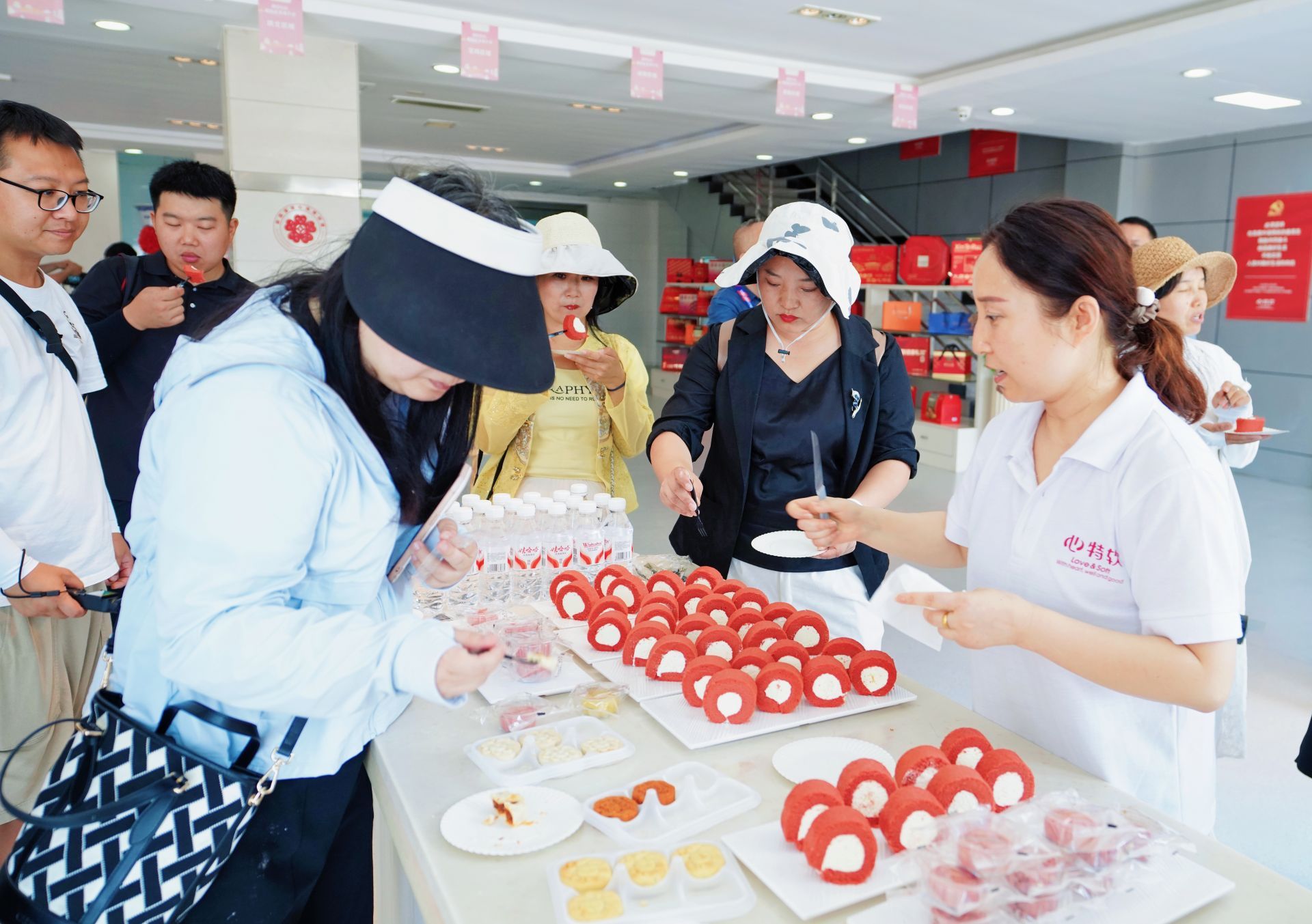 媒体记者们现场品尝了油泼辣子桃酥饼、曲奇饼干、糕点等产品后,纷纷给出了好评。