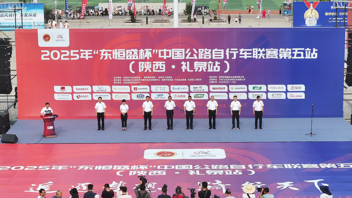 6月13日,中国自行车运动协会、陕西省体育局、咸阳市人民政府主办,咸阳市体育局、中共礼泉县委、礼泉县人民政府、陕西省航空无线电汽车摩托车运动管理中心承办的2025年中国公路自行车联赛(陕西·礼泉站)在礼泉县城东文体功能区广场开幕。