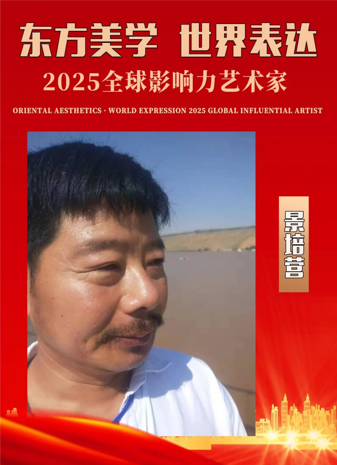 景培营的书法虽用功勤勉,但疏于展览。直至2015年8月得兴庆区书协梁斌老师的鼓励,书法作品参加《纪念中国人民抗日战争暨世界反法西斯战争胜利七十周年书画展》入展。景培营的书法于曹全碑一波三折中隐含端庄之气,坦荡磊落,有君子之风,开始受到银川书坛之关注。拜绘画名家赵红为老师,经常讨教于柴建方、陈国鸿、梁斌等书法家。