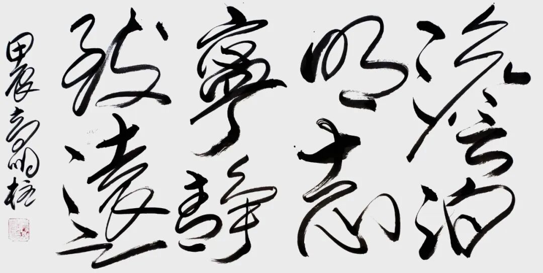 单国强先生在《逸笔生辉纵横开阖——观高明柱作品有感》一文中写到:“欣赏高明柱先生的书法作品,便会不由自主地被一股强大的书卷气概深深吸引。尤其是他的众幅行草书作品,更是令人叹为观止!书中首以二王、米南宫为根基,而后不仅深入参透了怀素、张旭、米芾等先贤笔意,同时对毛体书法的挥毫气象也是有所兼取融汇,此真是得其笔法而不徒其貌似,不泥古法,不执己见,惟在活而已矣!”博采众长的书法家高明柱,他的行草取毛体之狂放,融二王之韵致,摄米南宫之笔意,挥洒自如,活泼灵动,古韵悠长而刚柔并济,雅俗共赏,开一代行草风格。书法直取自然万象入书,大气磅礴,匠心独具,其作品大开大合而不失肃穆儒雅,潇洒飘逸而不失浑厚稳重,痛快淋漓而不失规矩法度,实可谓动中寓静,以静致动,静以动美,动因静生,妙趣无穷,苍静有力,气度非凡,美不胜收,有滚滚风云一泻千里之势,自成一体。当代评论家玉山先生则评其高明柱书法称道:“高明柱的行草书,取毛体之豪放,融二王之遒劲,摄米南宫之率意欹险,行笔婉转流畅,洒脱自然,笔锋颖脱,墨线内转外拓,大开大合,露锋以纵其神,藏锋以包其势,字字之间或欹斜、映带、揖让、向背、偃仰、错落奇崛,勾连首尾,上下呼应,纵横布局,跳宕回环,一气贯注,势不可挡。通篇之下而又绵绵不绝,如江流绕芳甸,豪畅奔流。笔墨疾徐纵横,如激雷跳荡,风卷残云,字态龙腾虎跃,惊蛇入草,飞鸟入林,而收笔又无往不复,无垂不缩。除草书外,高明柱的行书遒厚丰润,格调清新,结字笔画均承法度而又新颖独到,呈现出清润秀逸、儒雅朴茂、高古邵秀之美”。