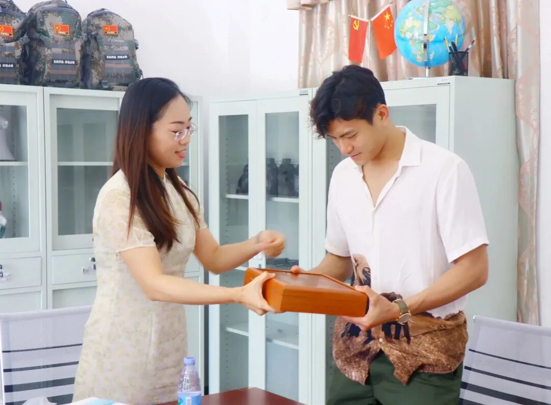 我们送了一份极具惠东特色的礼物给陈镇威,当拿出惠东手信——象棋的那一刻,陈镇威非常欣喜地说:“是象棋,你们怎么知道我想买一套象棋?太好了,可以和爸爸一起下象棋,谢谢!”