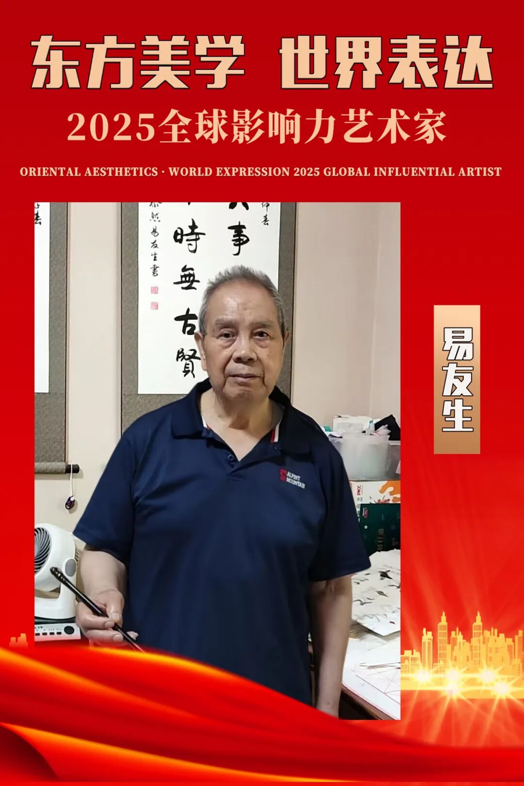 易友生,笔名:泰然,1944年5月出生于湖南省黔阳县(现为洪江市)。武汉大学电力学院毕业,原工作于湖南电力公司怀化供电公司,高级工程师,长期从事技术工作。现为北京国臻艺宛书法院书法院士、中国书画家协会会员、一级书法师、 CCTV—中央电视台书画院客座教授。