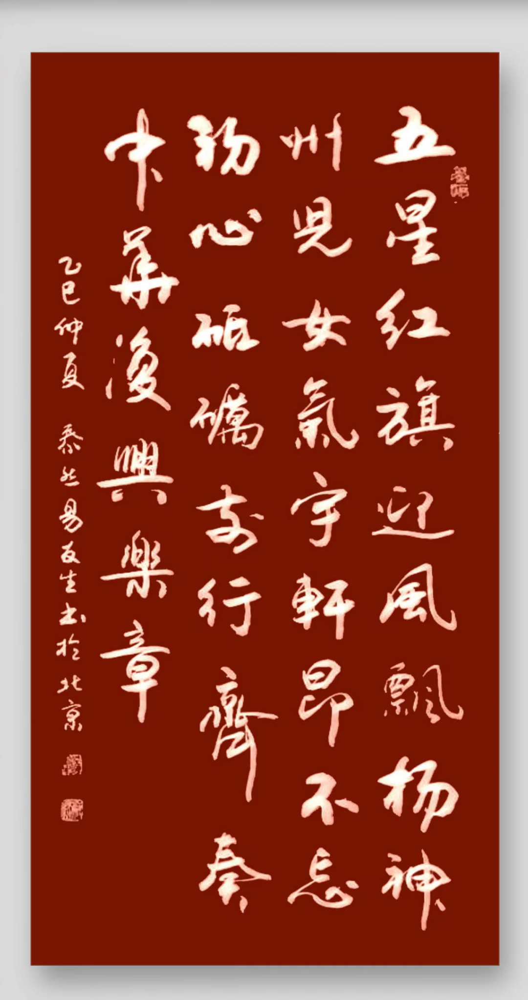 作品入选2025年《盛世华章 锦秀山河》全国书画艺术名家作品专题展,并颁发了参展艺术家证书和抗日战争胜利80周年艺术家荣誉证书。作品入编由中国文联主编的《文华盛世 翰墨传薪》抗战胜利80周年中国艺术名家历史文献作品集。