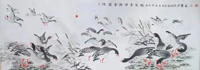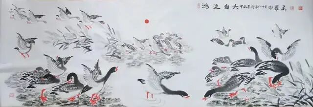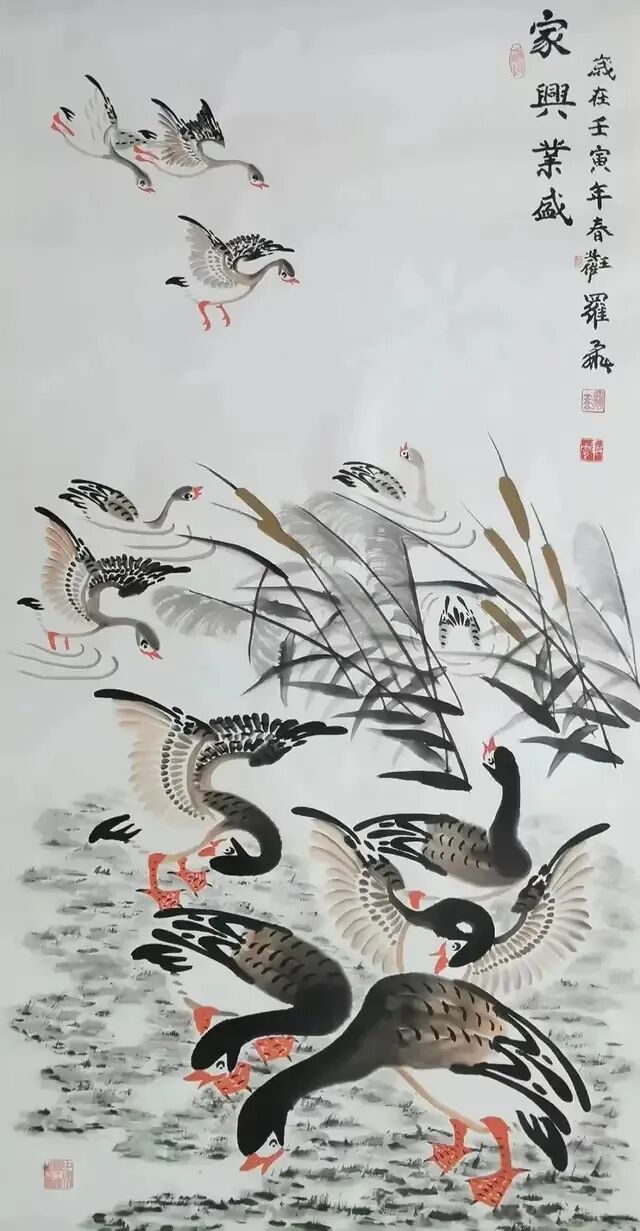 罗维存先生绘丹至今,其画作于单纯中显繁境,笔精而墨妙,神清而气爽,两者相互生发,蒙养以生长,神韵冲和,造诣非凡。鸿雁于千里,展翅高飞,肃肃其羽。先生乞灵感于自然,求法度于非法,是今日之画家多不能至也,气愈大而魄愈雄,格愈高而质愈贵,一纸笔墨,尽归罗维存先生魂梦之间,笔墨之下也!其以鸿鹄之志之深心,超然出尘之怀抱,必能创造自我之艺术新境界,绘雁之路如鸿雁腾飞、扬名寰宇!