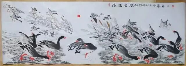 作品多次被邀请赴美国、巴西、俄罗斯、新加坡、韩国、日本和港台地区画展,获“世界美术大奖勋章”及“二十世纪中日书画名匠勋章”。2008鸿雁作品五十米长卷入选国宝档案存档。