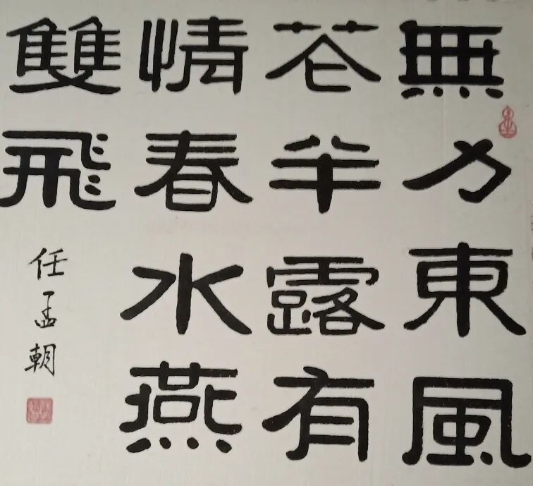 余以为,任孟朝先生能取得今日的书法成就,并不是偶然,而是有着一定的必然性与时代性。提笔从文数十余载,任孟朝先生始终坚持以古为训的路子,师法碑帖,临池耕耘,是取前人之笔气精神,而从不拘束于形似之流,实乃学书贵于慎取,探其堂奥,识其门路,方能使古法优游于笔端,然后传神也!
