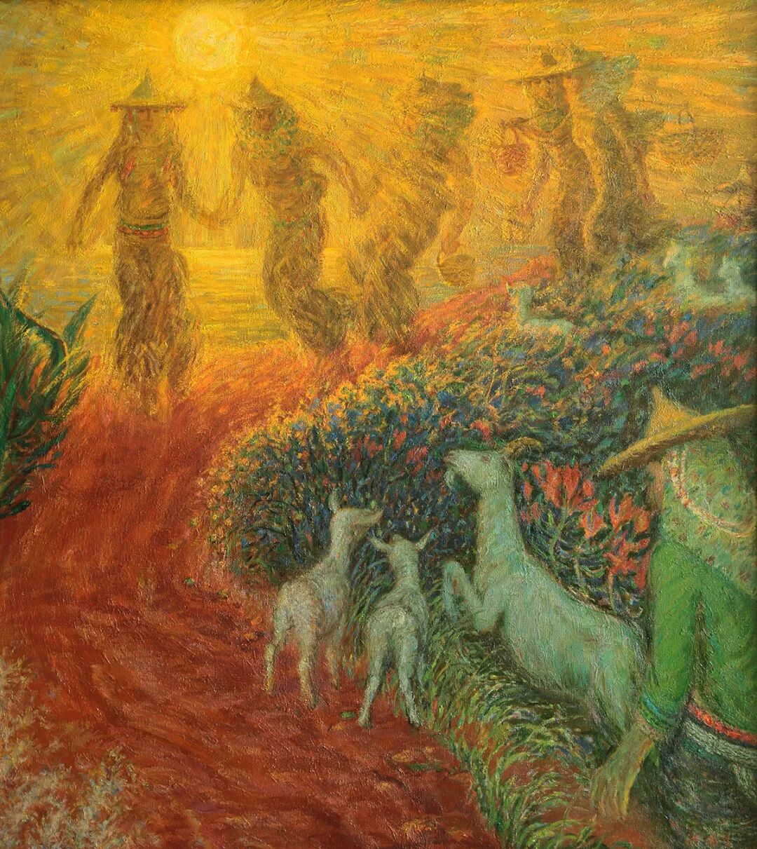《圣火》 44cm X 33cm 油画 1990年 洪瑞生 (获艺术与和平——2024年首届国际艺术名家网络双年展优秀作品奖)
