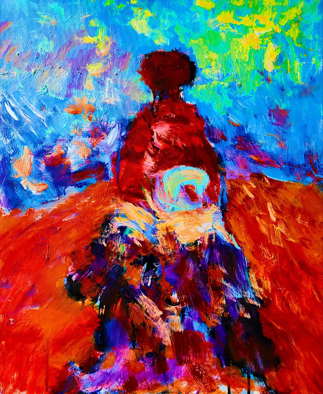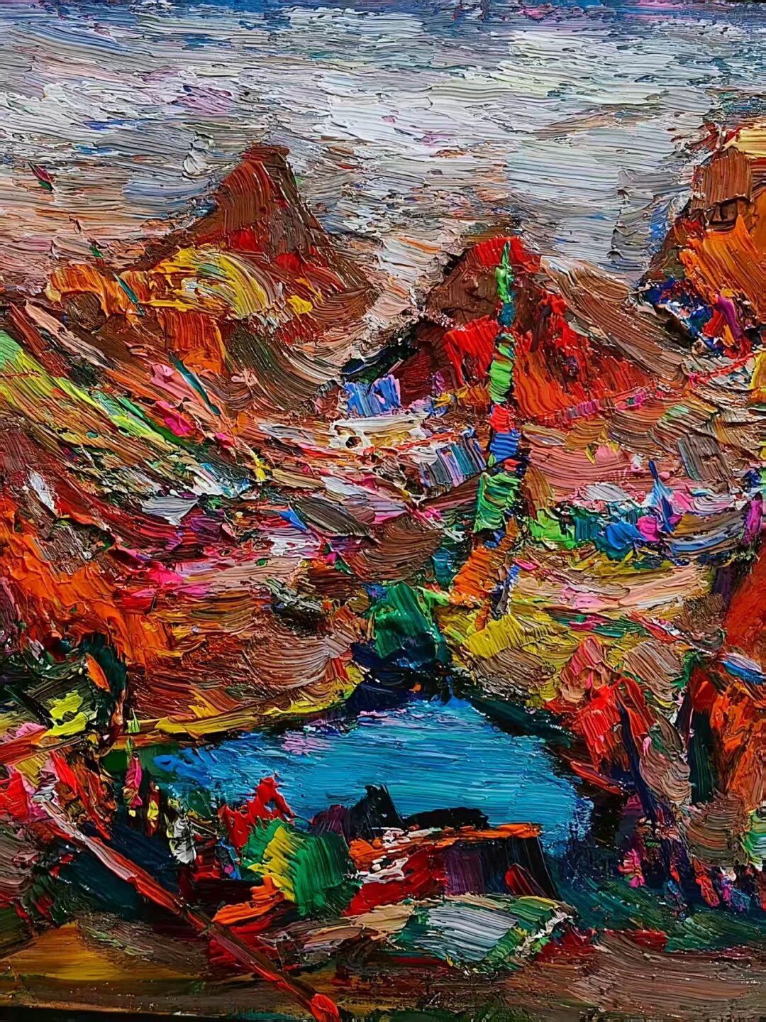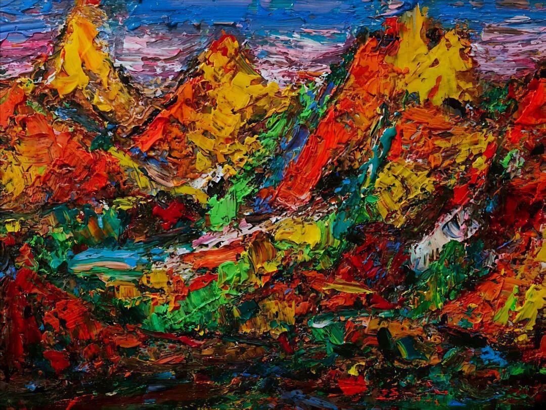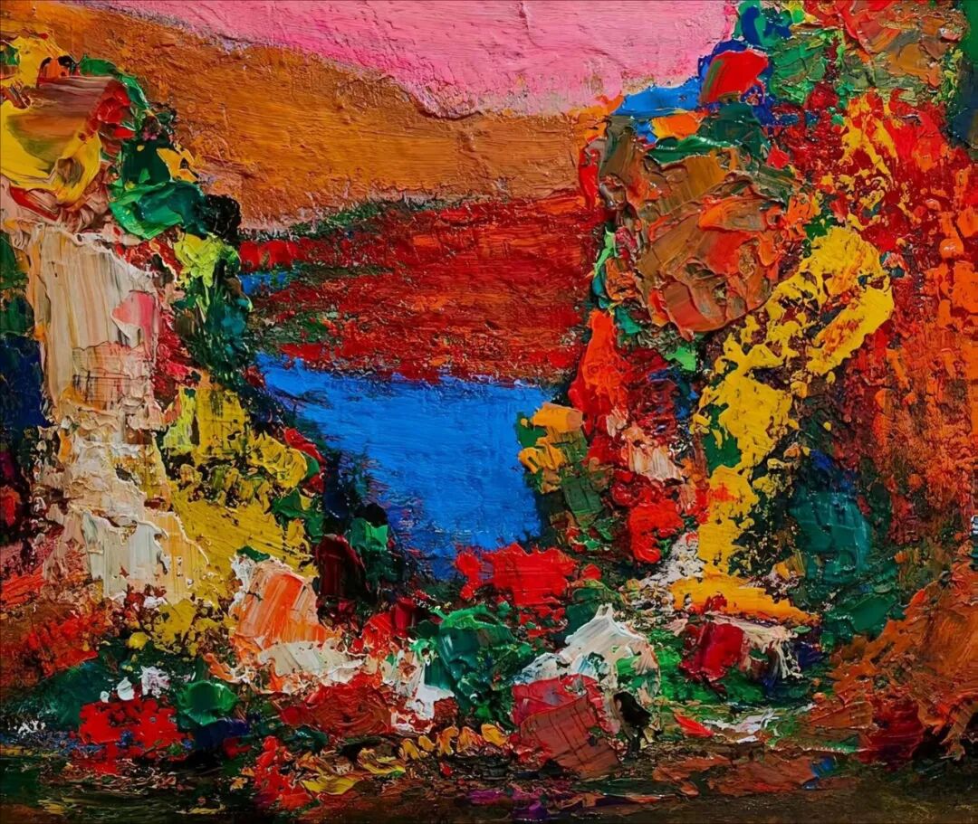 魏耘老师身植于“大凉山”“西藏"地气与振荡的时空,水土交融、气脉温和、溶于感应之中,气息圆合,意念之情怀,感生于土地。入骨之、心理构建于阿克夏的引力场的五行的现象基础,充满空间的“原始介质”麦充之 。即阿卡西的记录仪中,念力与缠绕的量子光;而获天命之年的他,正至于怀,通于魂灵,入眼帘观感之中,溢之荡漾的心灵·语言。获于原发性的心智。支配情感色彩的表达,油画?油画颜料只是介质的媒介而以。