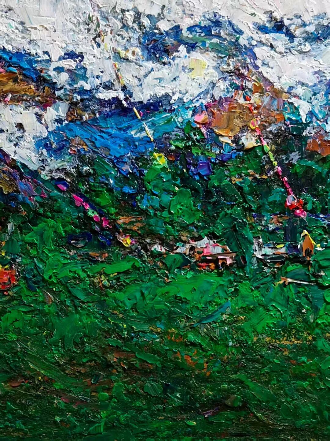 诚然,他的真谛归聚于大地,独自“大凉山”‘西藏″圣山灵水之间,从画中可看到的土气,相拥的色感折射的光。