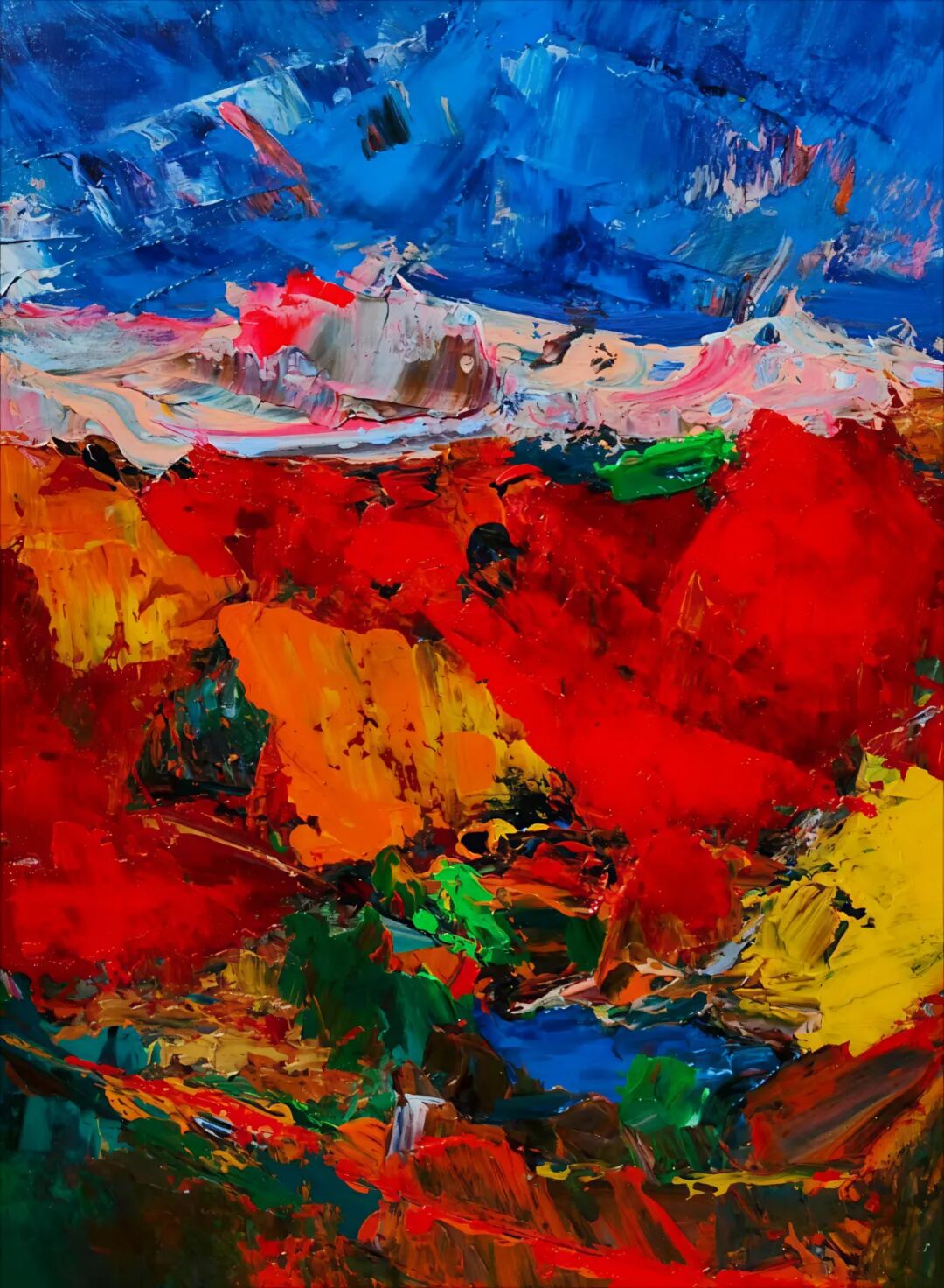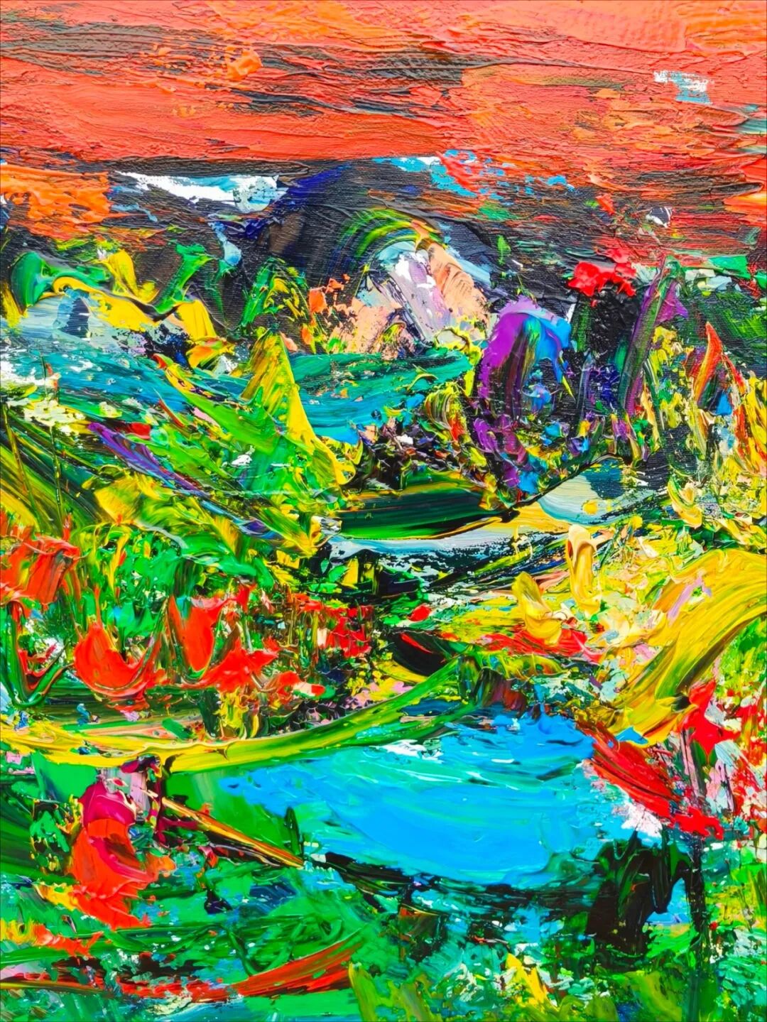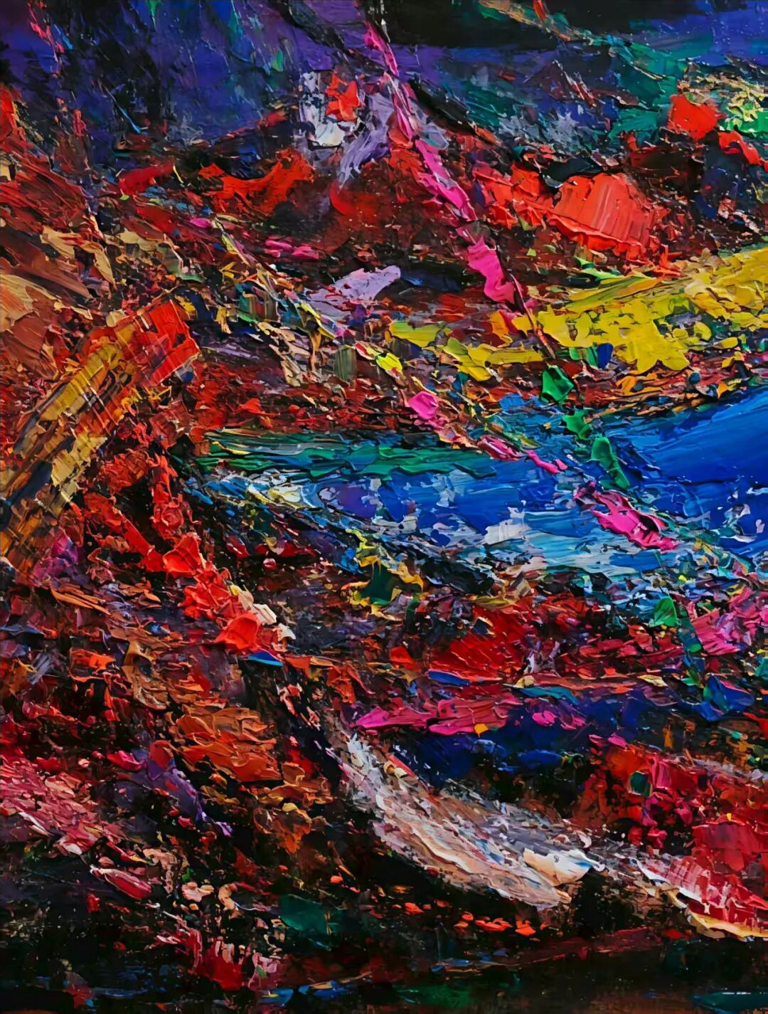魏耘颠覆了印象派的光谱观念,大胆地使用钛白与钴蓝等色彩模拟视网膜过载的视觉效果,带来了前所未有的视觉震撼。