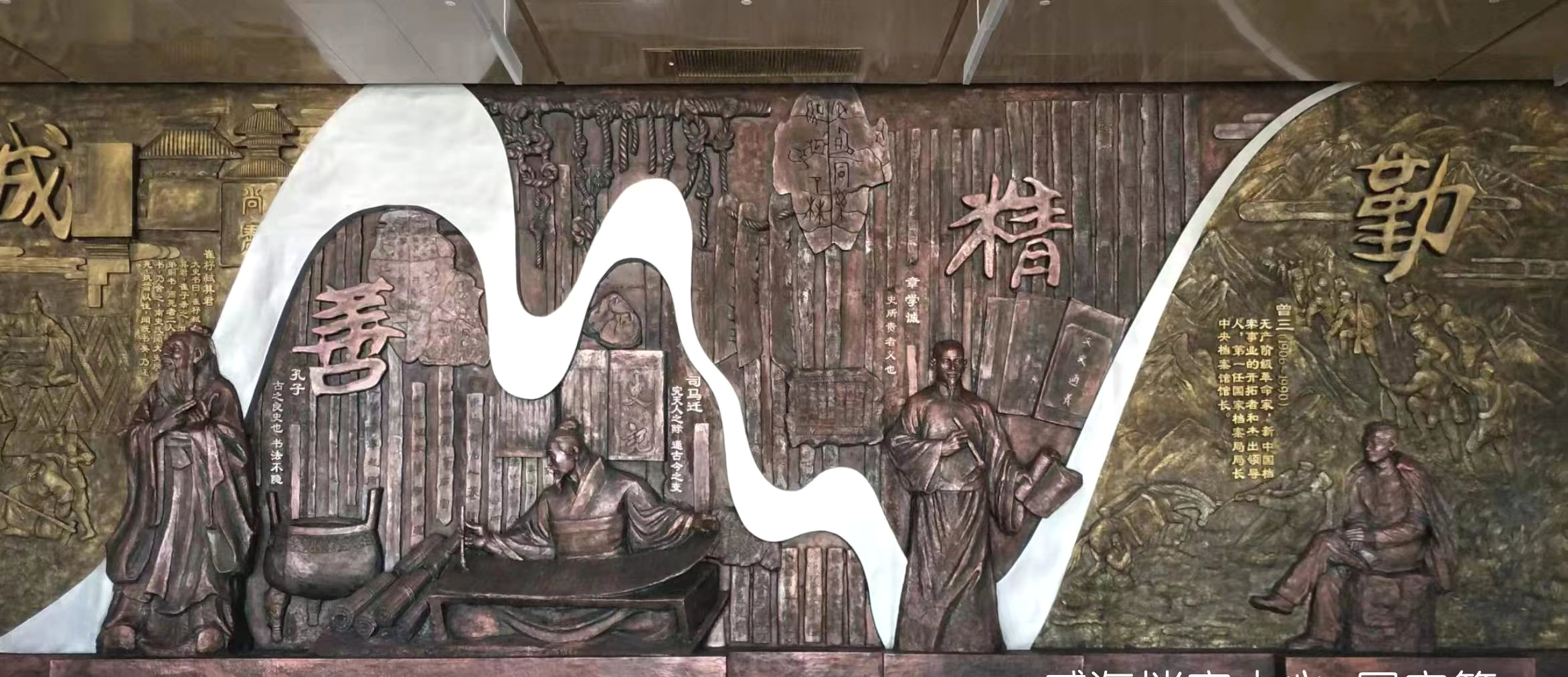王天国:威海档案馆•国家篇巨大浮雕,详细的记录了历史上的孔子、司马迁、章学诚,直到中华人民共和国第一任档案馆馆长曾三的事迹,精诚所至,勤善有为!很是感人难忘。