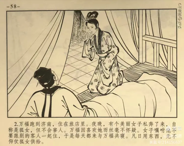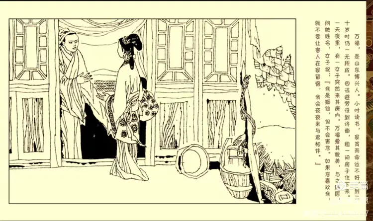 万福字子祥,博兴人,幼业儒,家少有而运殊蹇,年二十有奇,尚不能掇一芹。乡中浇俗,多报富户役,长厚者至碎破其家。万适报充役,惧而逃,如济南,税居逆旅。夜有奔女,颜色颇丽,万悦而私之,问姓氏。女自言:“实狐,然不为君祟。”万喜而不疑。女嘱勿与客共,遂日至,与共卧处。凡日用所需,无不仰给于狐。