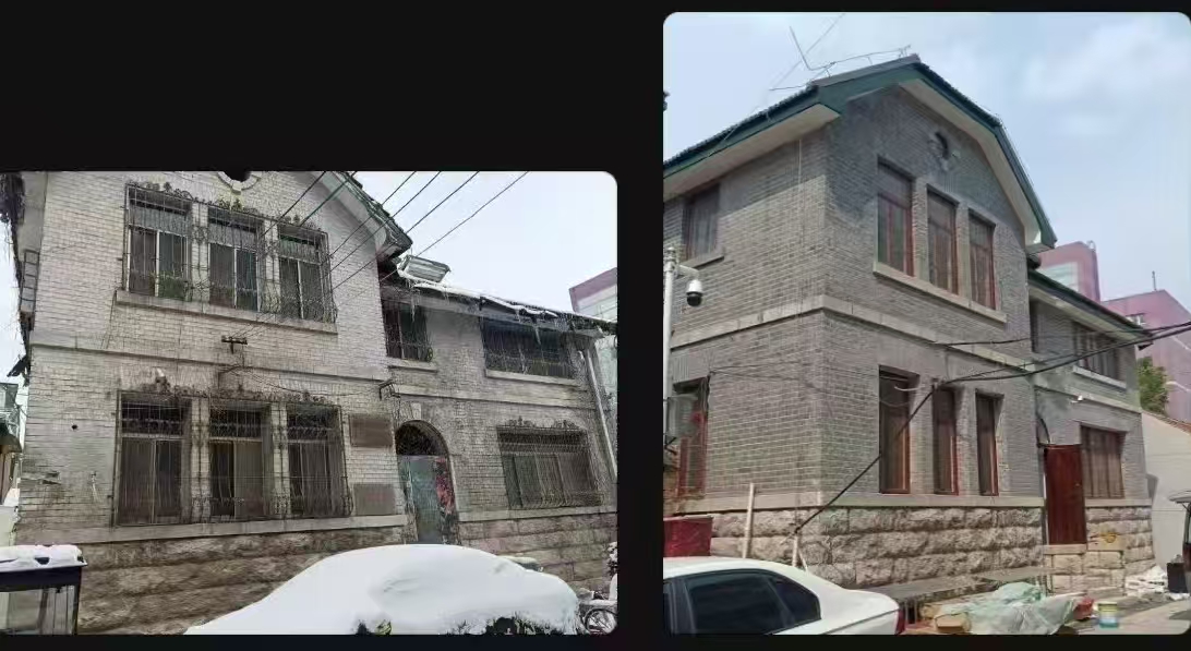 左图:江家公馆修缮之前,拍摄于2025年3月3号。