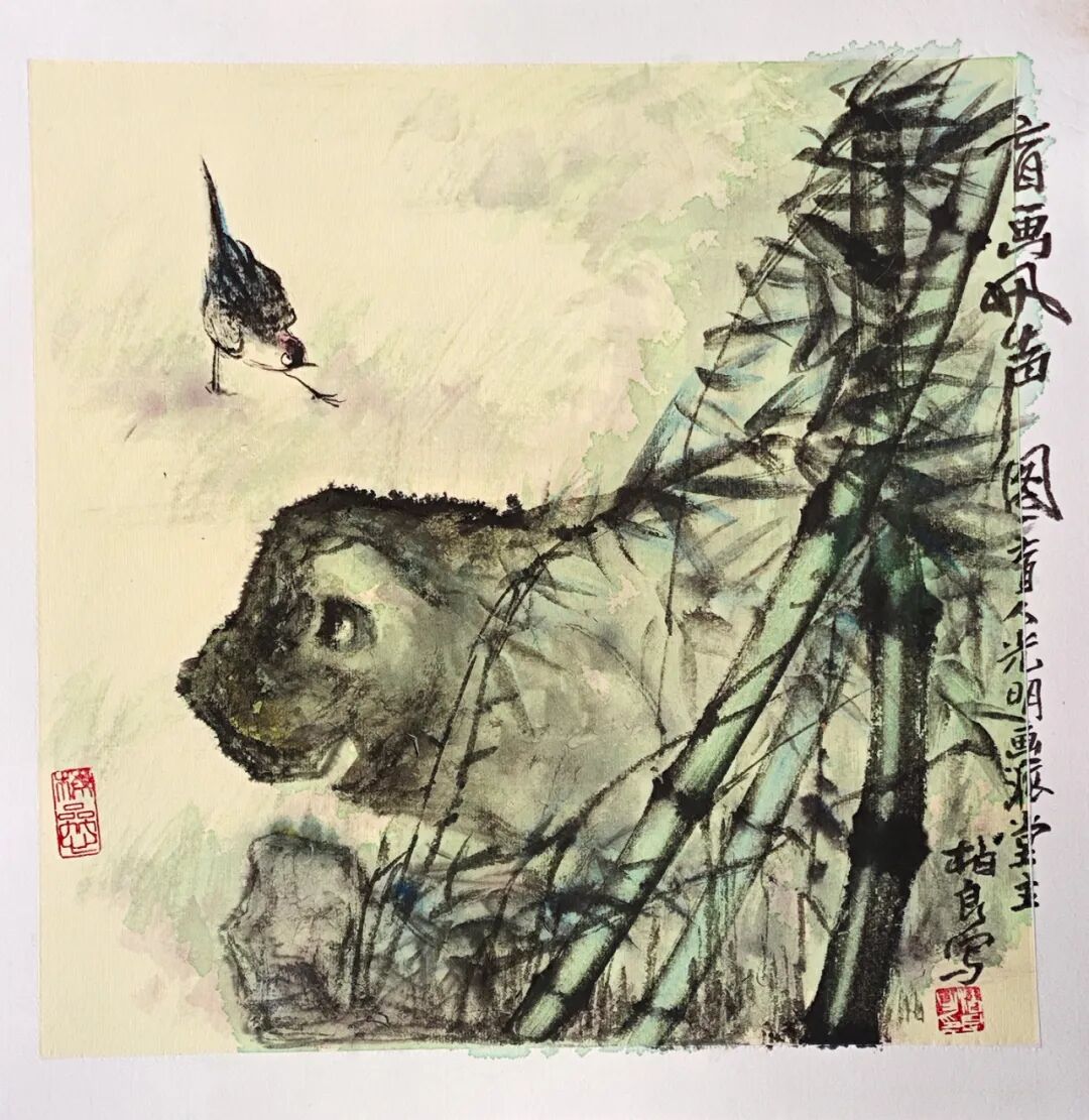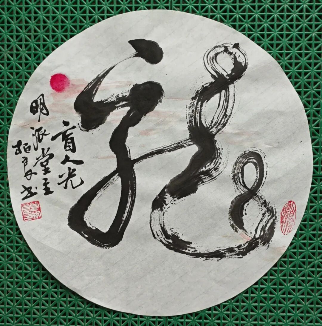 能盲画是修行之人,是超越自己,是心灵的光明和禅定,能开眼作画的人是在用三维空间的方便去顺其自然的功到自然成。盲画、开眼画有如一枚硬币,有所得必有所不得。所谓的人们一辈子都到达不了宇宙硬币的背面,一阴一阳之谓道,盲画闻画朝闻道。